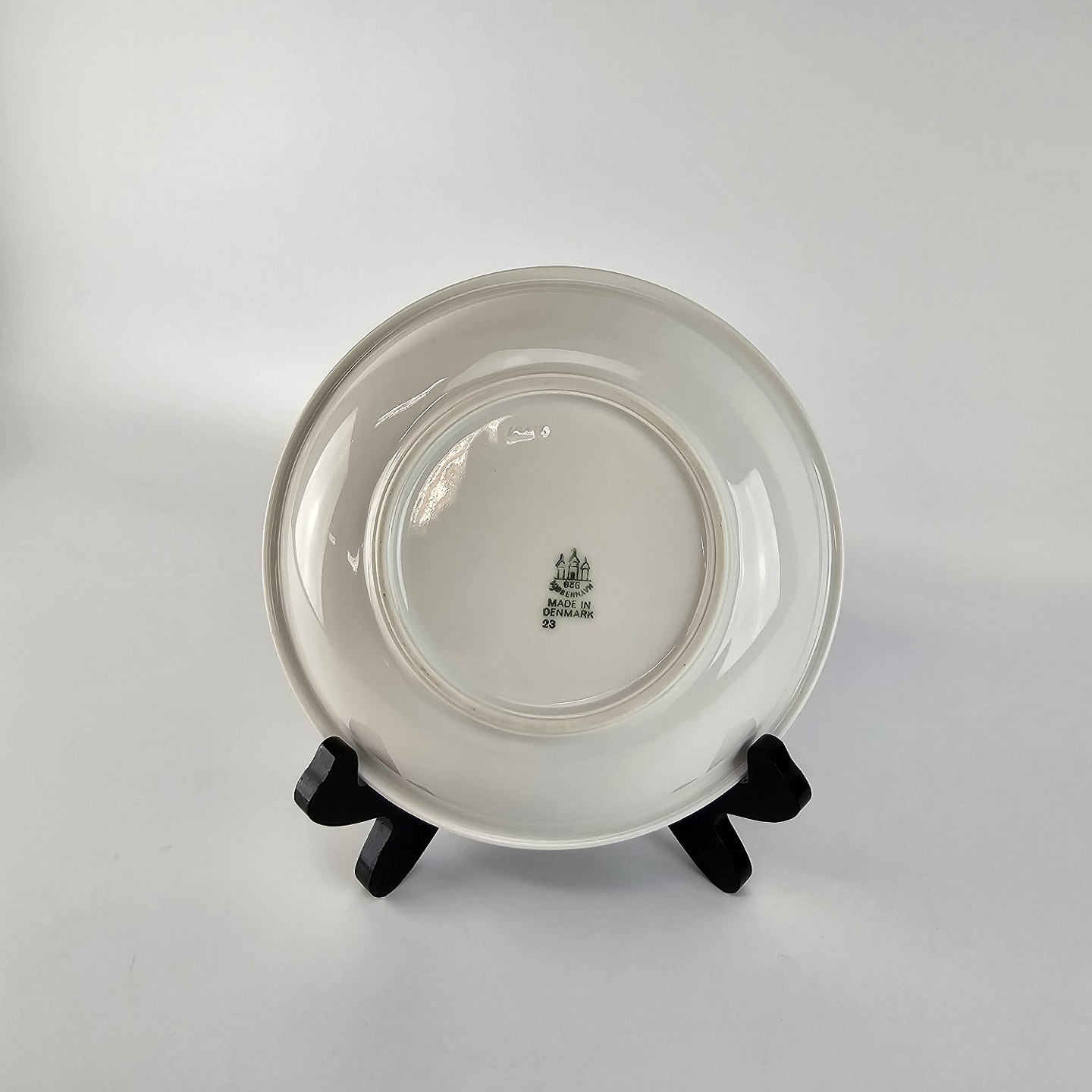 Norma er hvidt porcelæn dekoreret med gråligt bånd og guldringe. Brugsspor kan forekomme