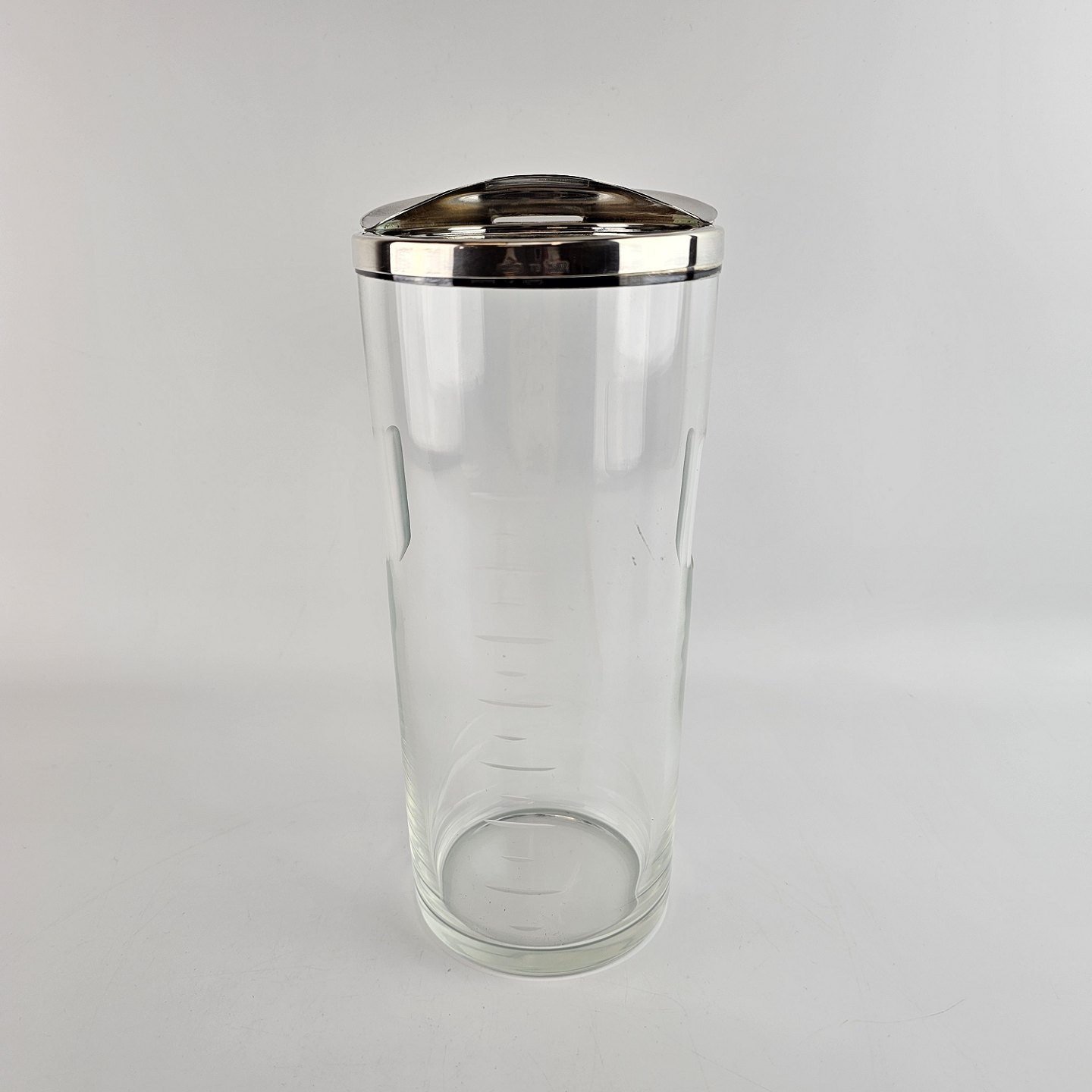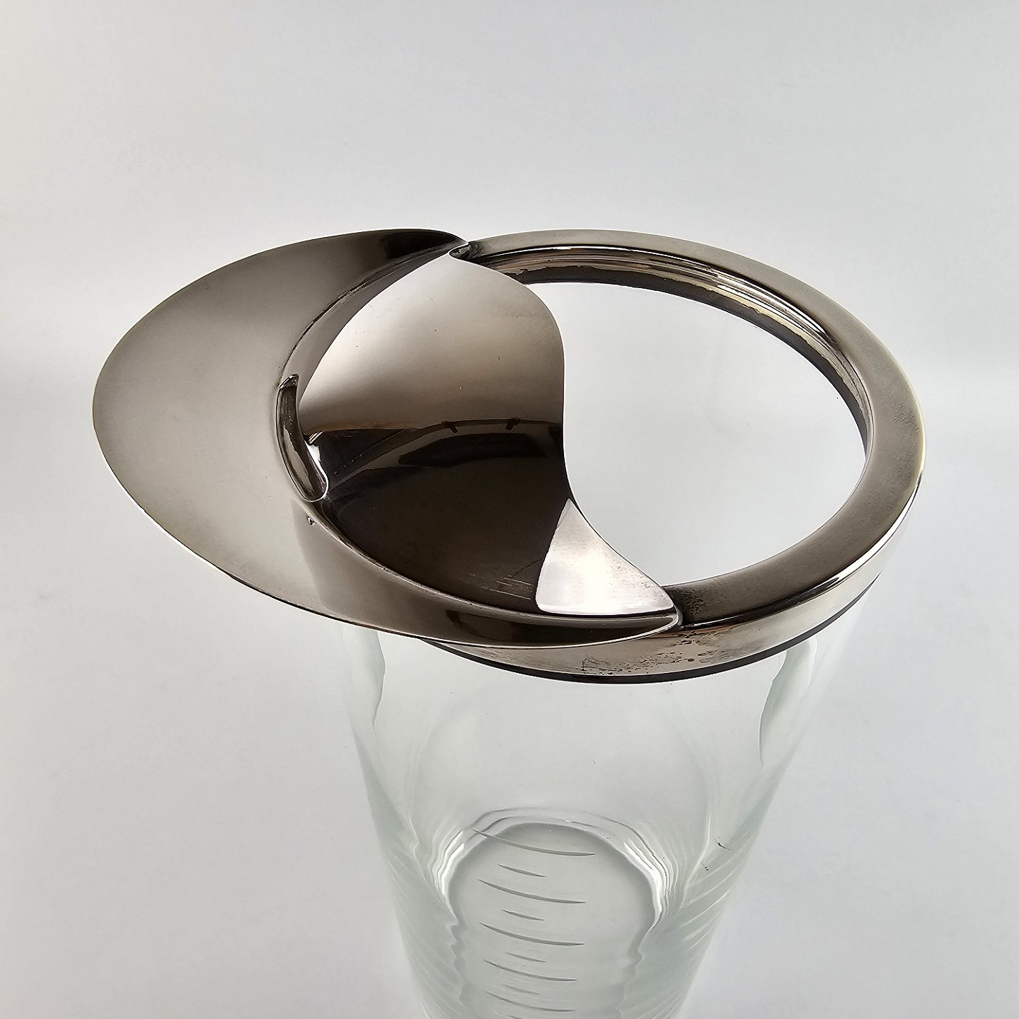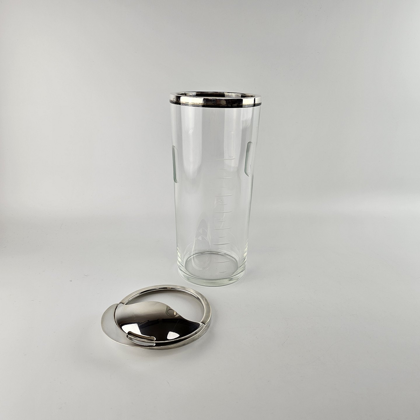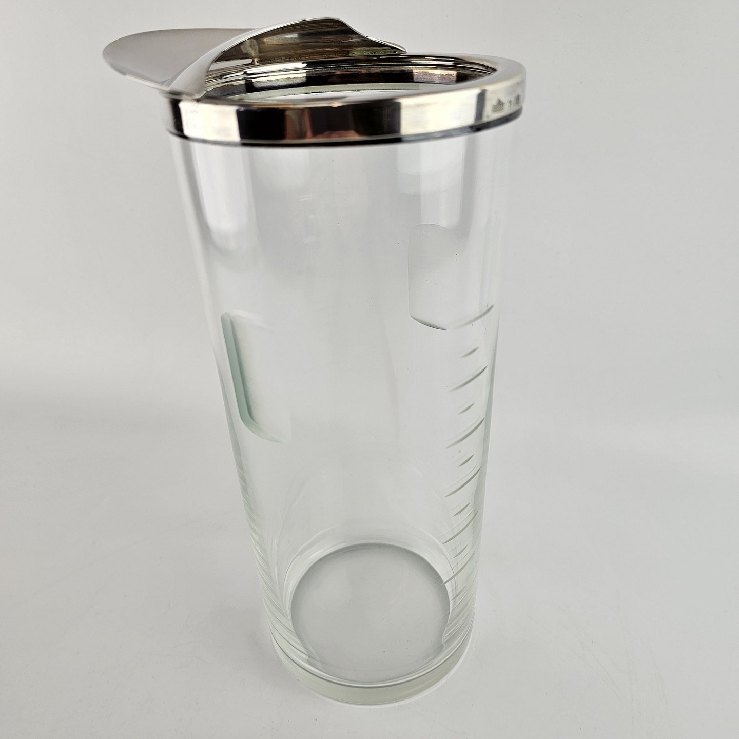 Glaskande med hældetud. Kant og låg i sterlingsølv