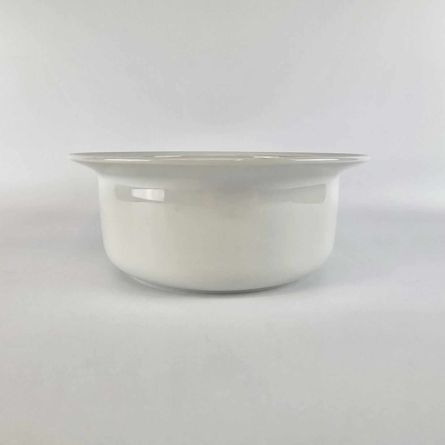 Hank er af hvidt glaseret porcelæn og med sorte hanke. Brugsspor kan forekomme