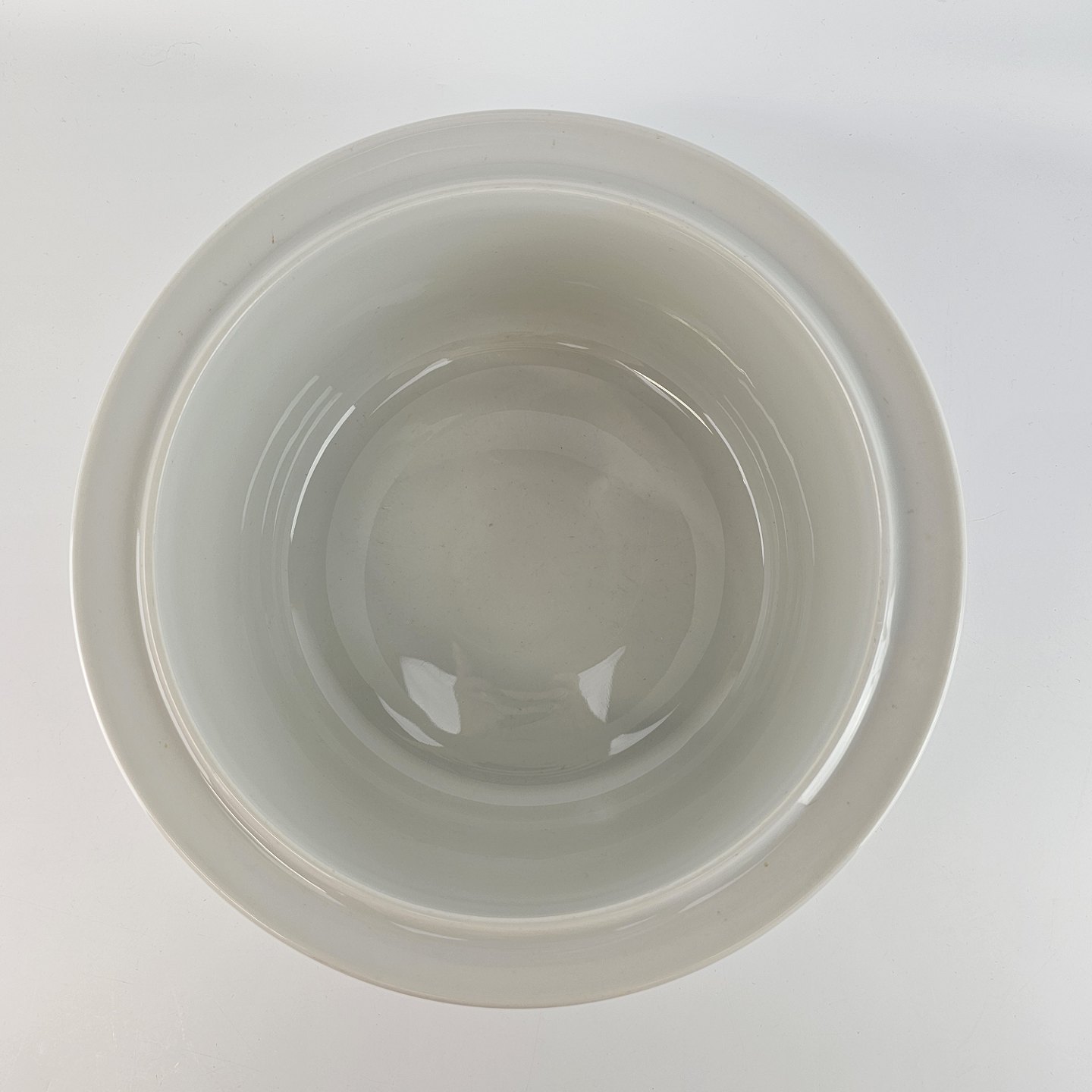 Hank er af hvidt glaseret porcelæn og med sorte hanke. Brugsspor kan forekomme