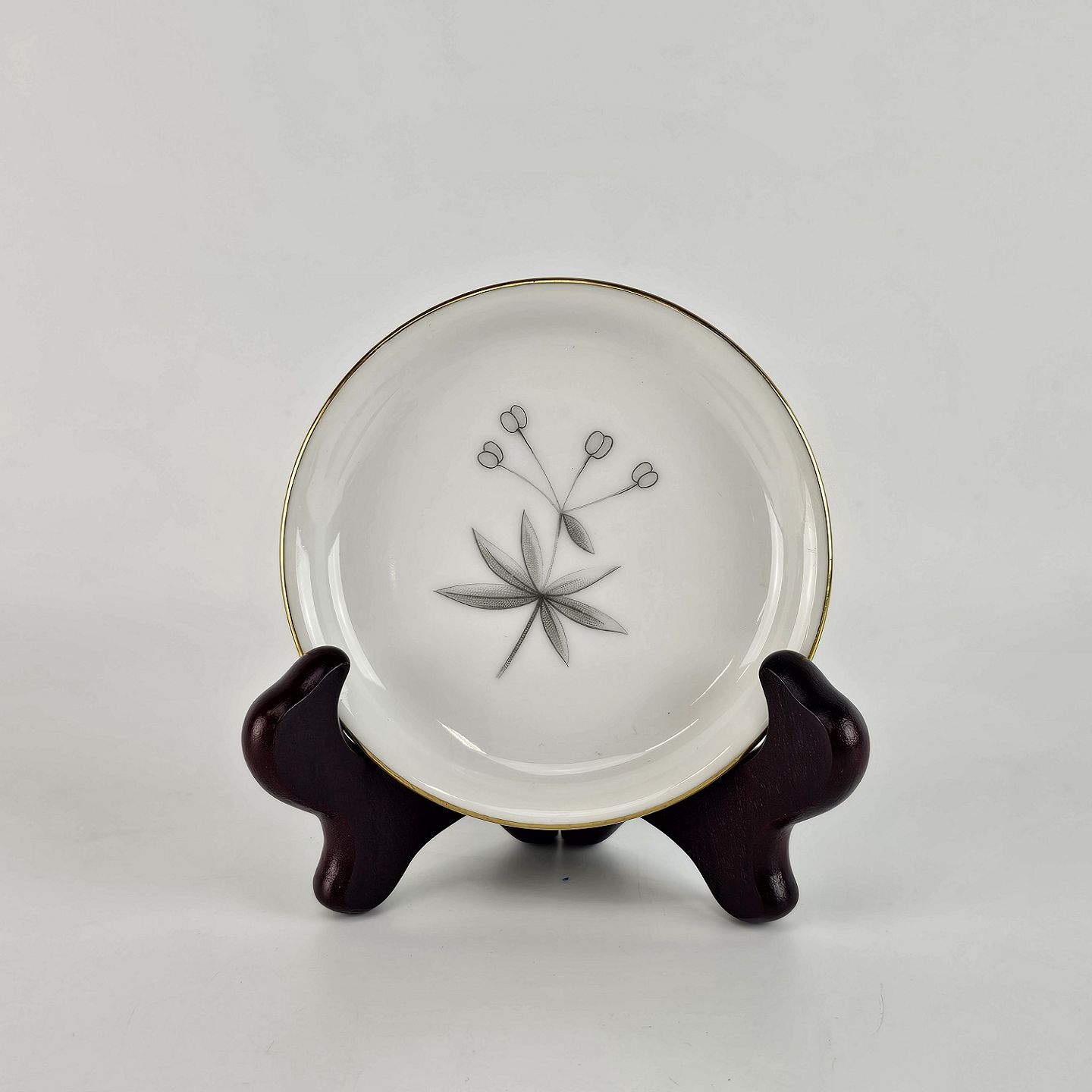 Stellet Henrik er af hvidt porcelæn dekoreret med grå burresnerre og guldkant. Mindre brugsspor kan forekomme