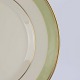 Stellet er fremstillet i glat cremefarvet porcelæn med lysegrøn dekoration og guldkant.