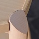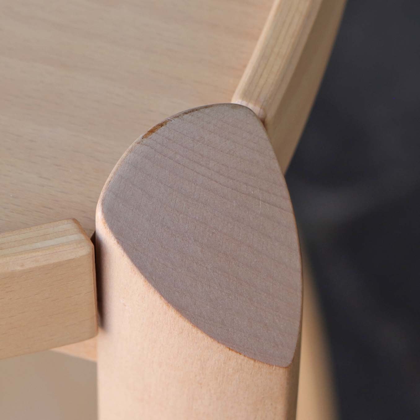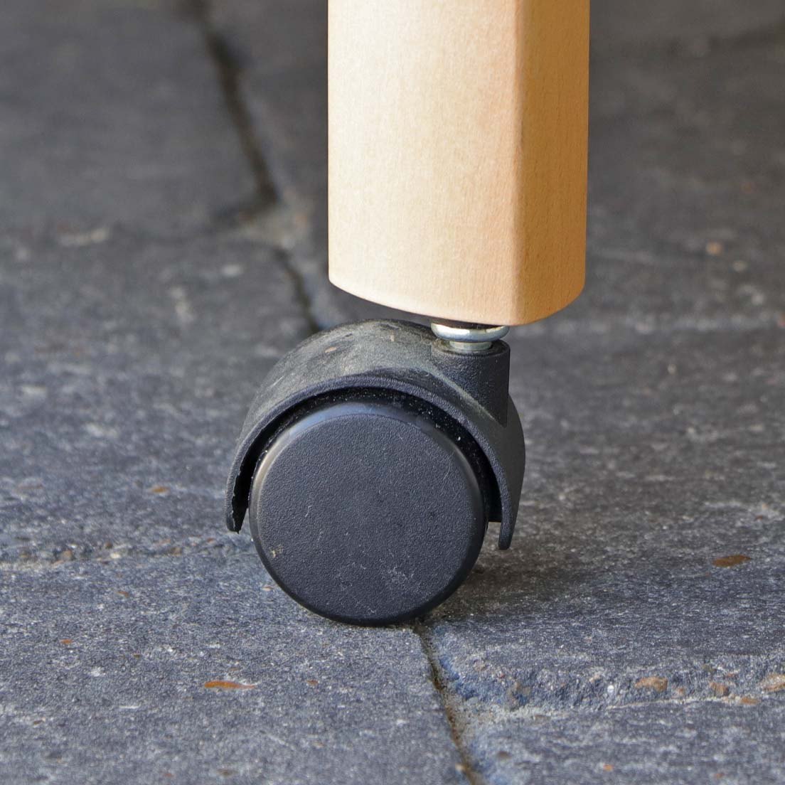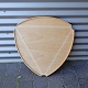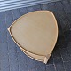 Trekantet bakkebord i lakeret bøgetræ med aftagelig topplade og sorte hjul i plast