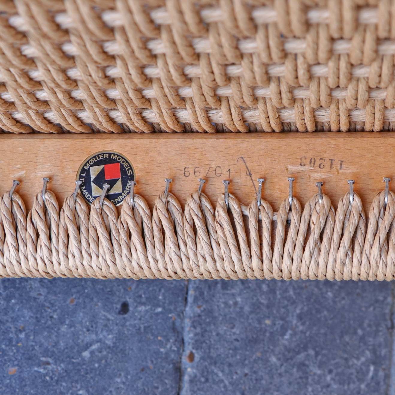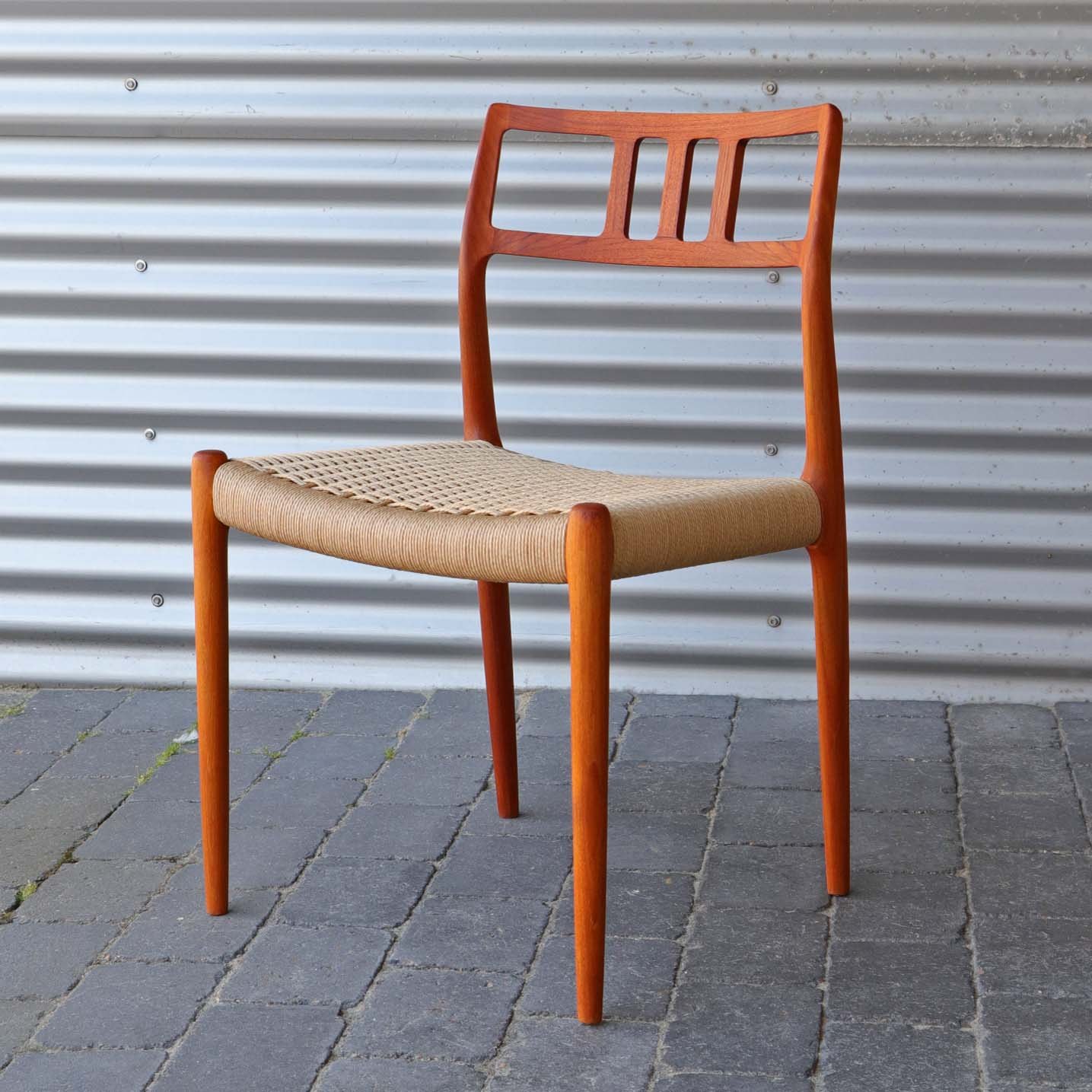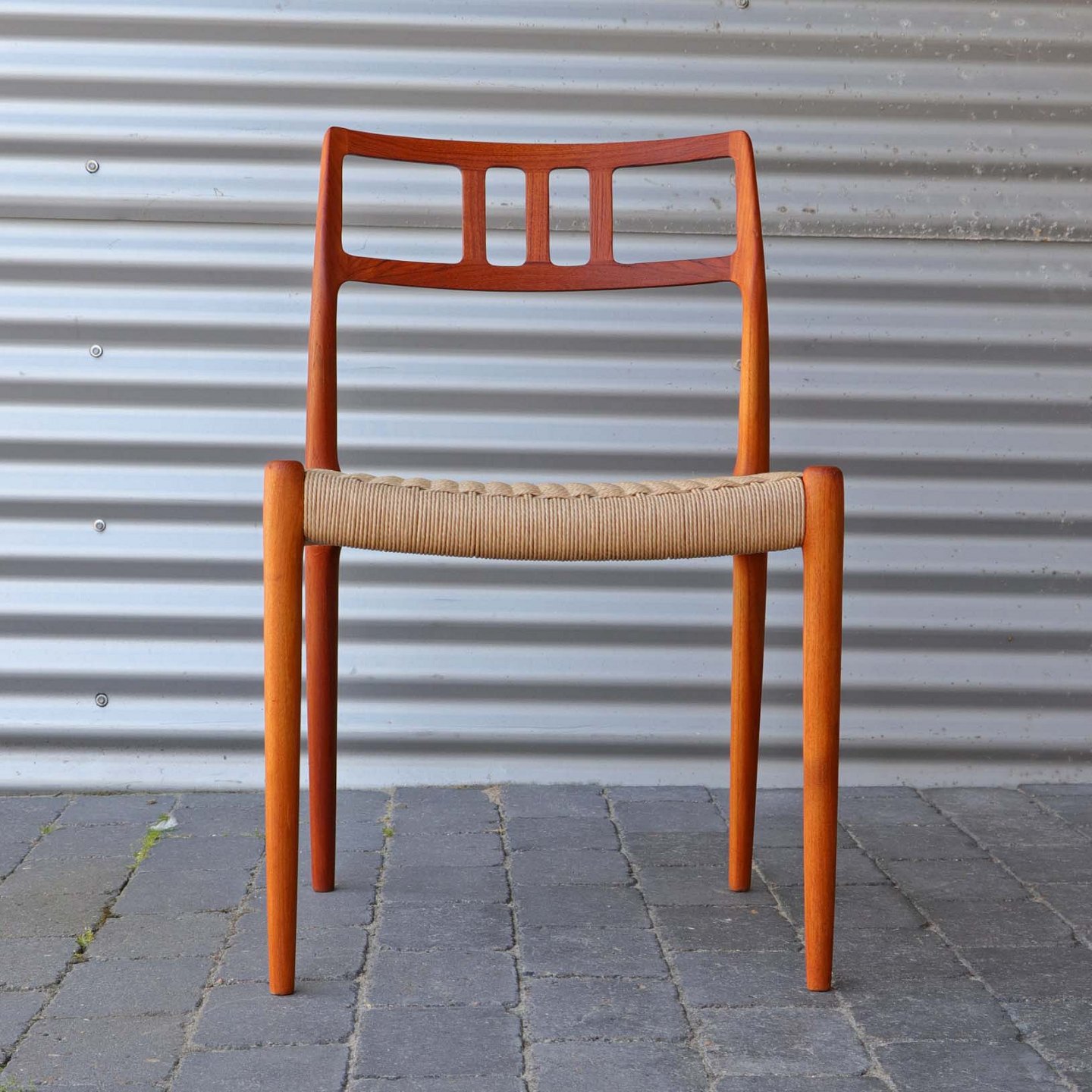 Sæt med fire styk spisebordsstole model 79 i teaktræ med ny flettede sæder