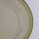 Stellet er fremstillet i glat cremefarvet porcelæn med lysegrøn dekoration og guldkant.