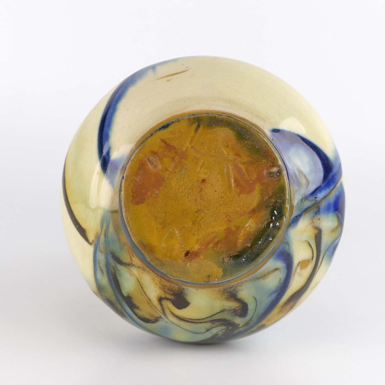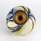 Vase i glaseret keramik med abstrakt mønster i sorte, gul og blå nuancer