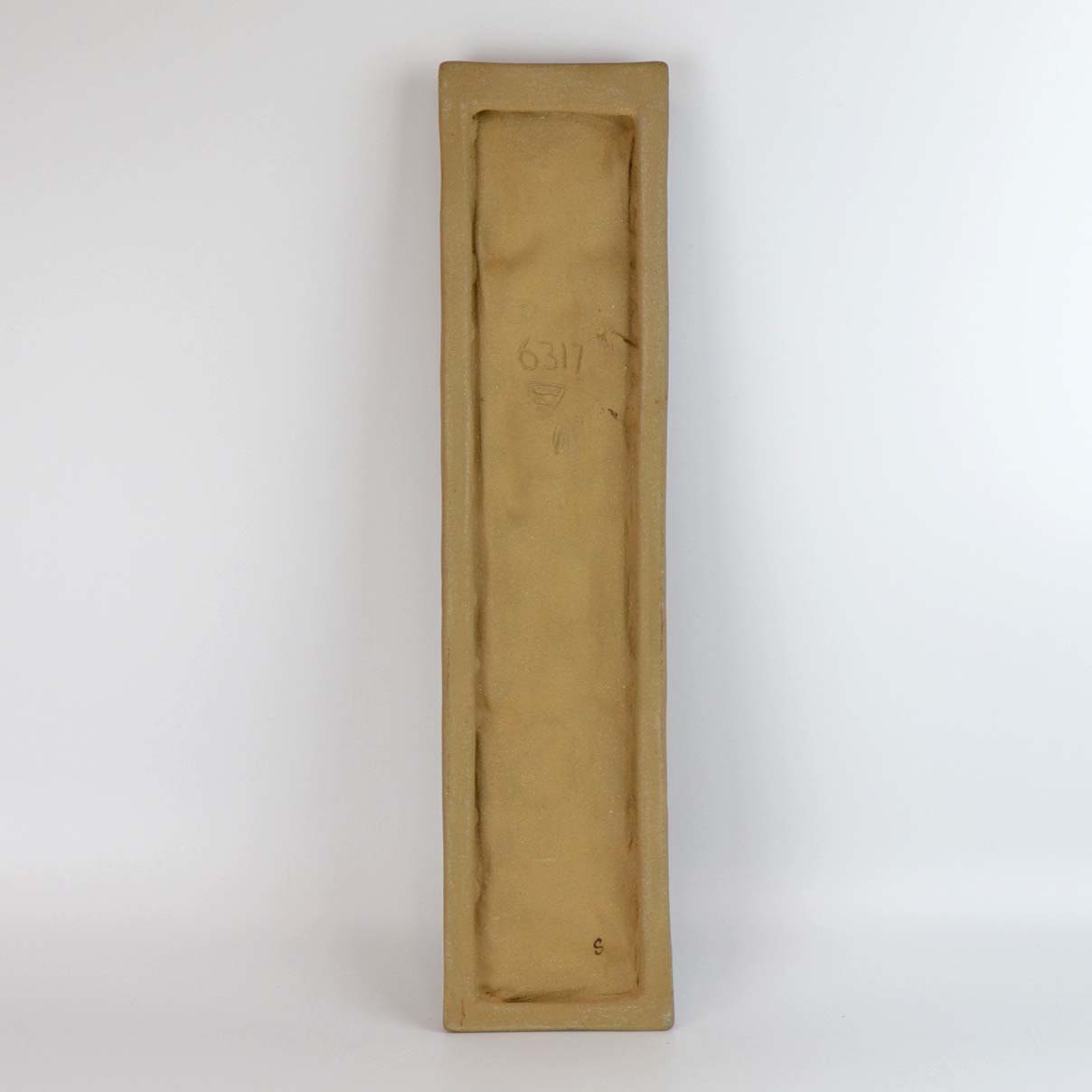 Relief i keramik med motiv af sommerfugle dekoreret med blå og hvid glasur på baggrund af rå keramik. Nr. 6317