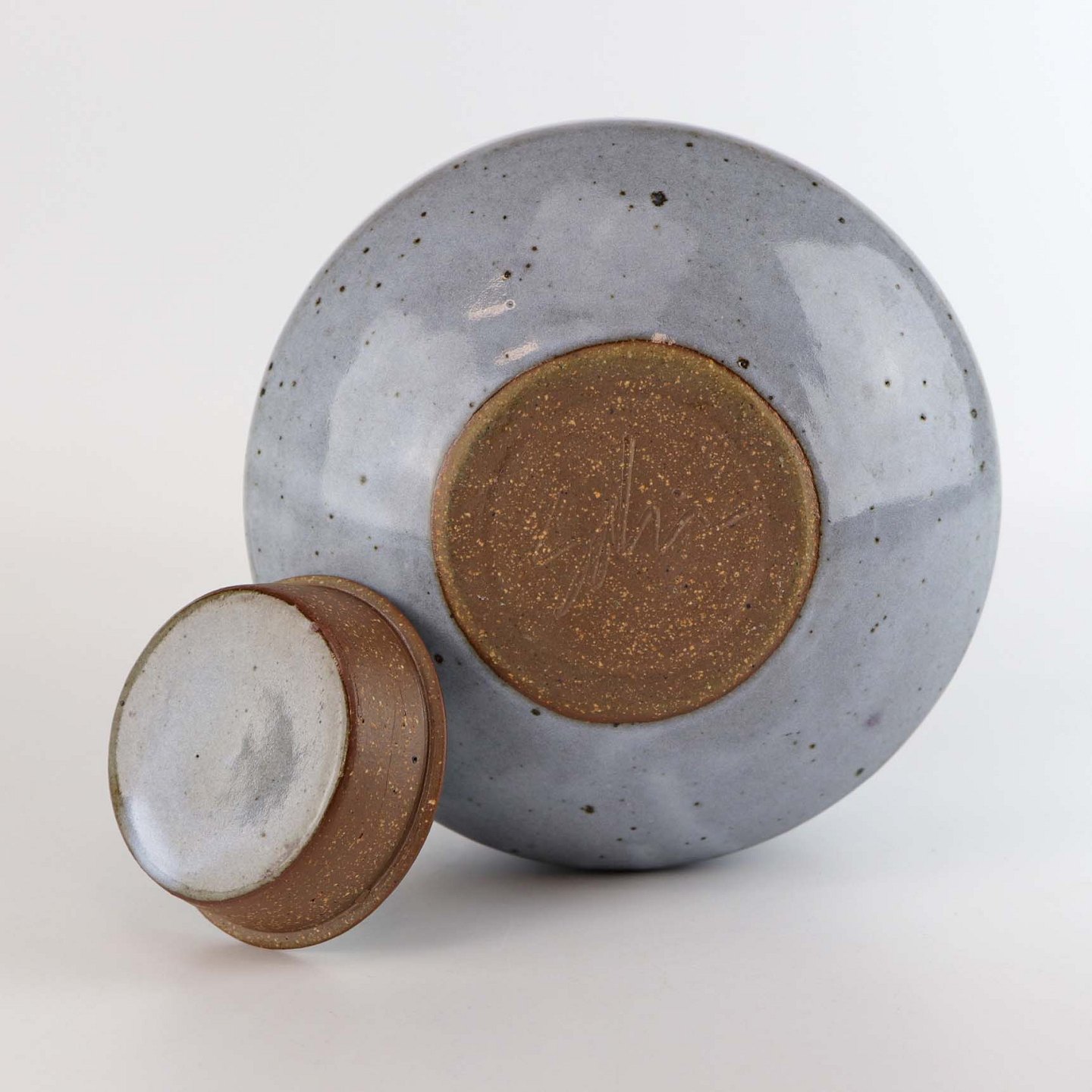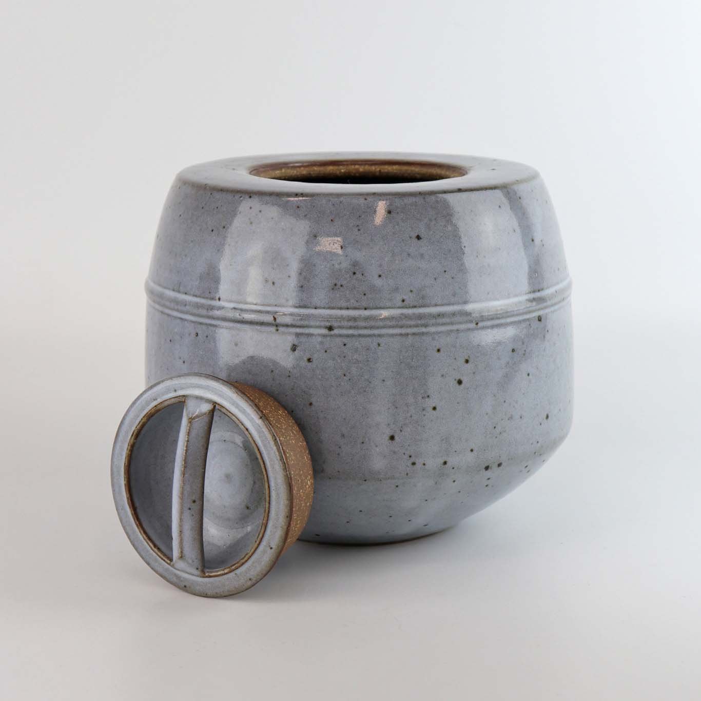 Krukke med låg i keramik med grålilla glasering