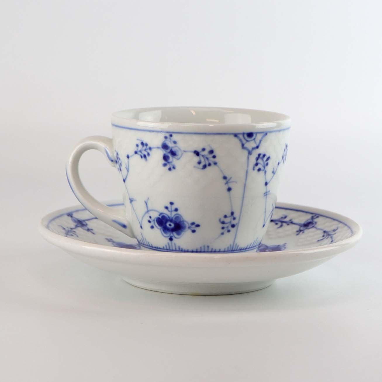 Kaffekop med underkop i hotelporcelæn fra stellet Blåmalet nr. 1022