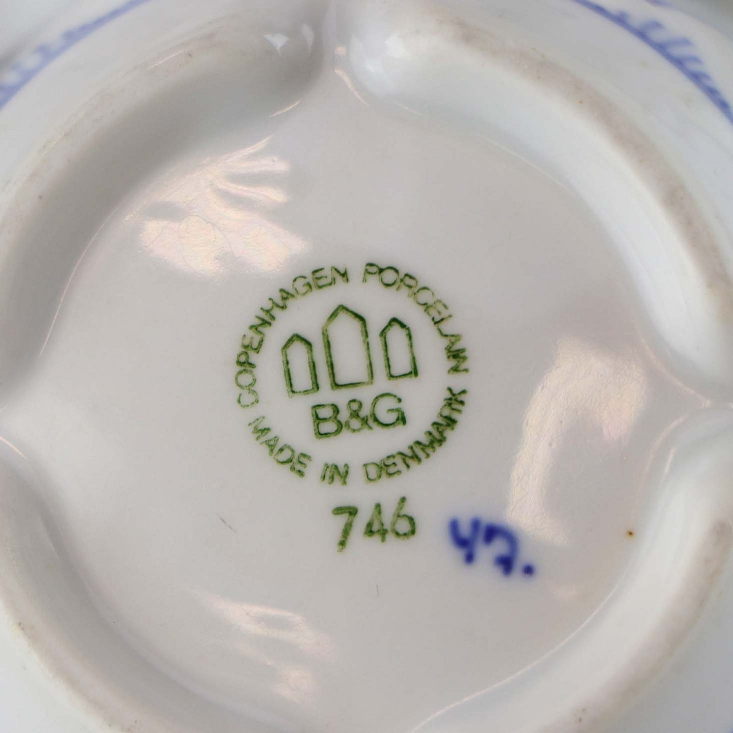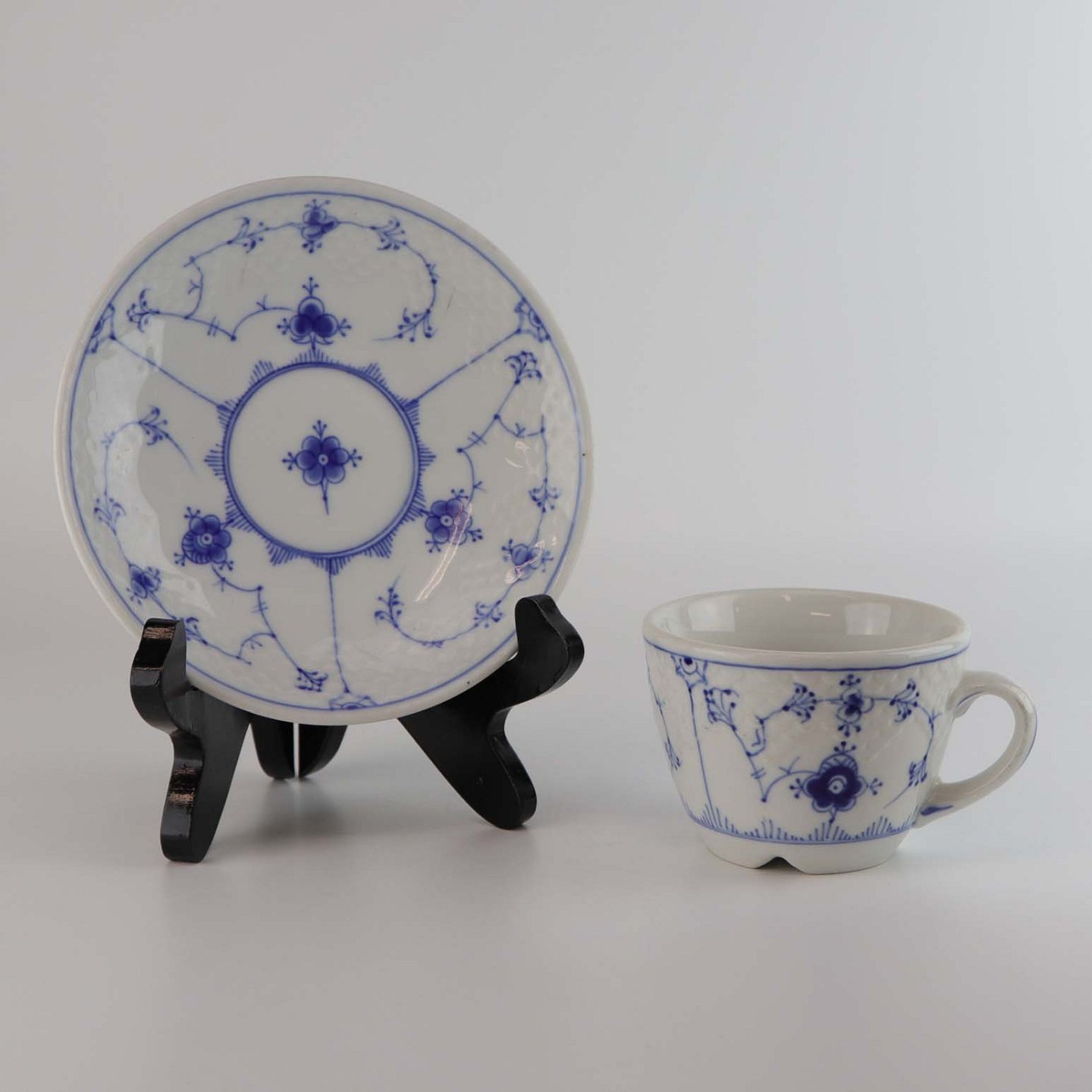 Stor kaffekop med underkop i hotelporcelæn fra stellet Blåmalet nr. 746