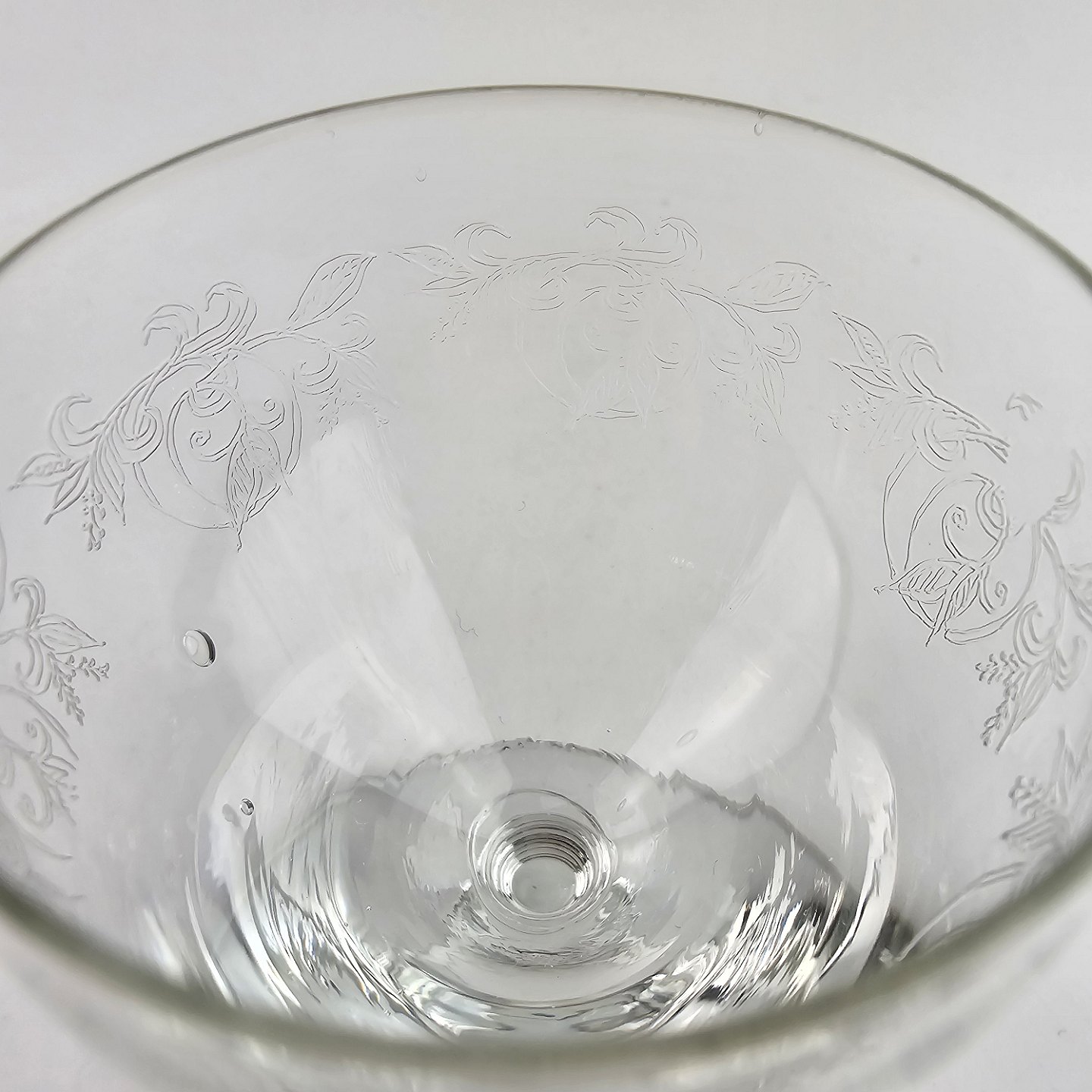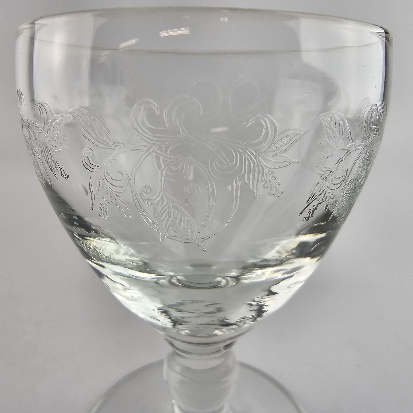 Portvinsglas af mundblæst glas, dekoreret med ætsning nr. 5, fra serien Gerda. Produceret fra 1938 til 1950'erne