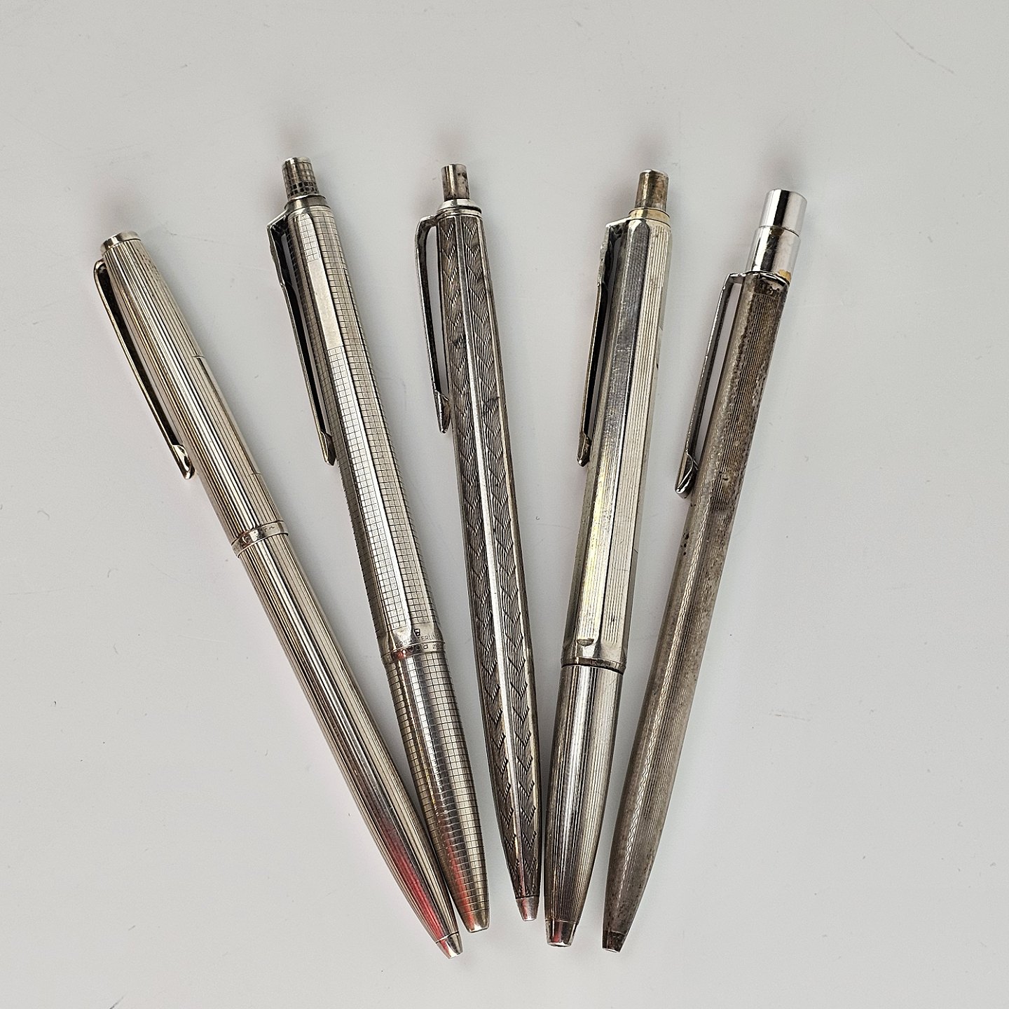 Fem penne af sølv. 4 stk. Sterlingsølv, 925s og 1 stk. 830s