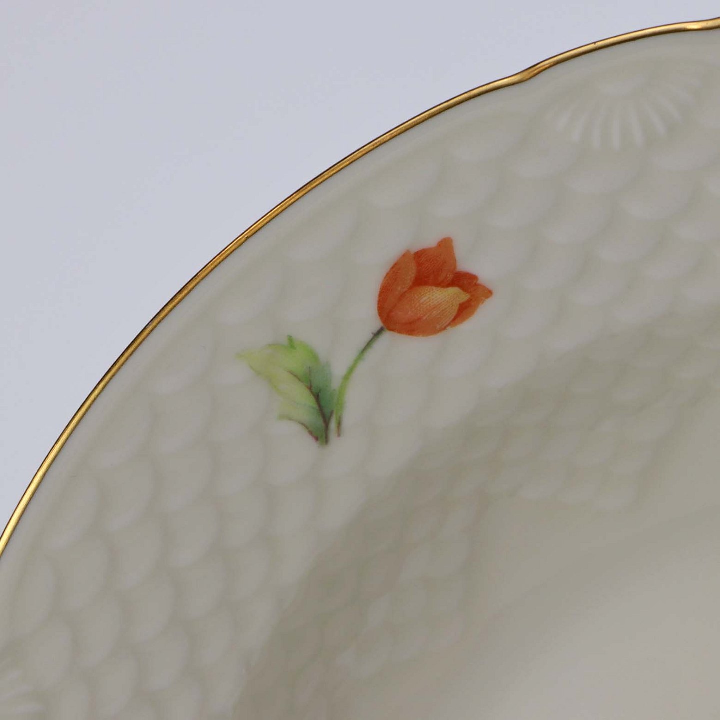 Thor Anemone er af cremefarvet glaseret porcelæn, dekoreret med forskellig farvede anemoner og gylden kant