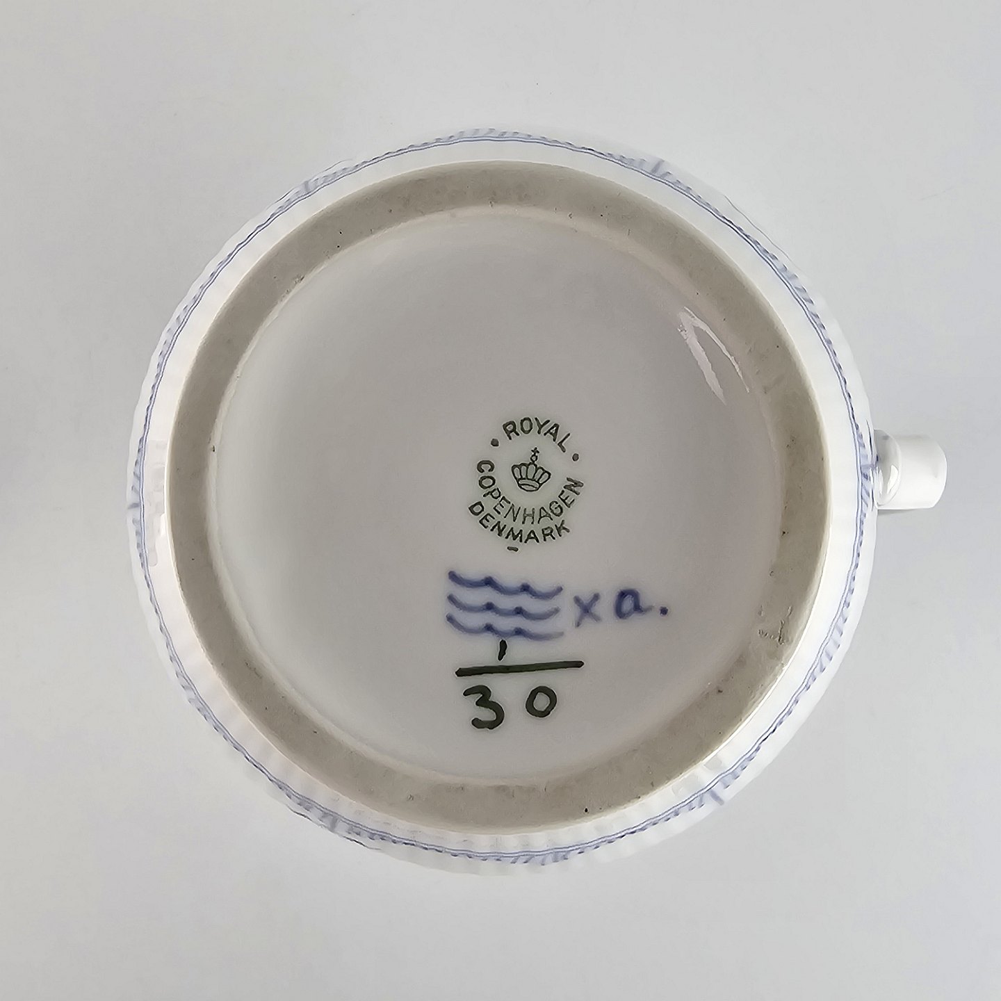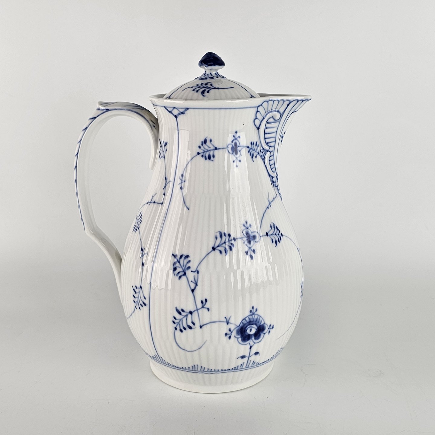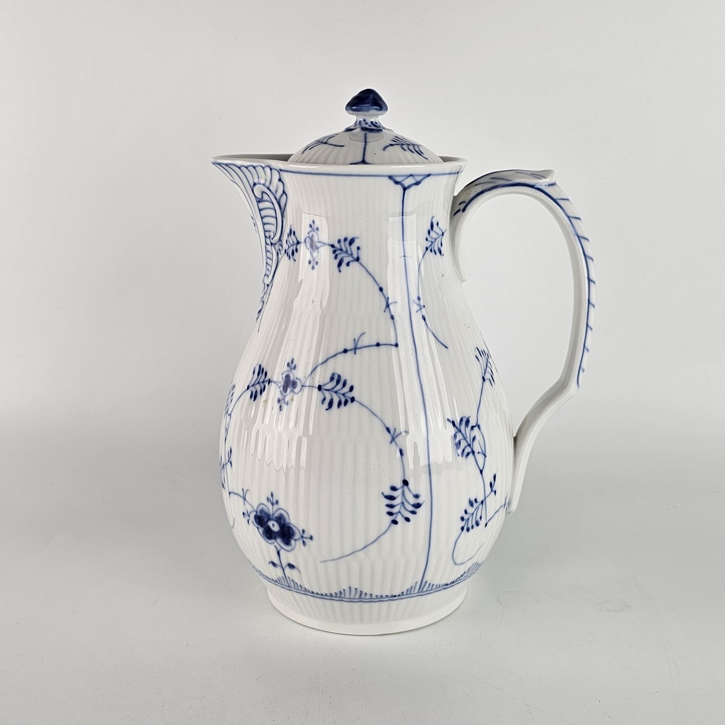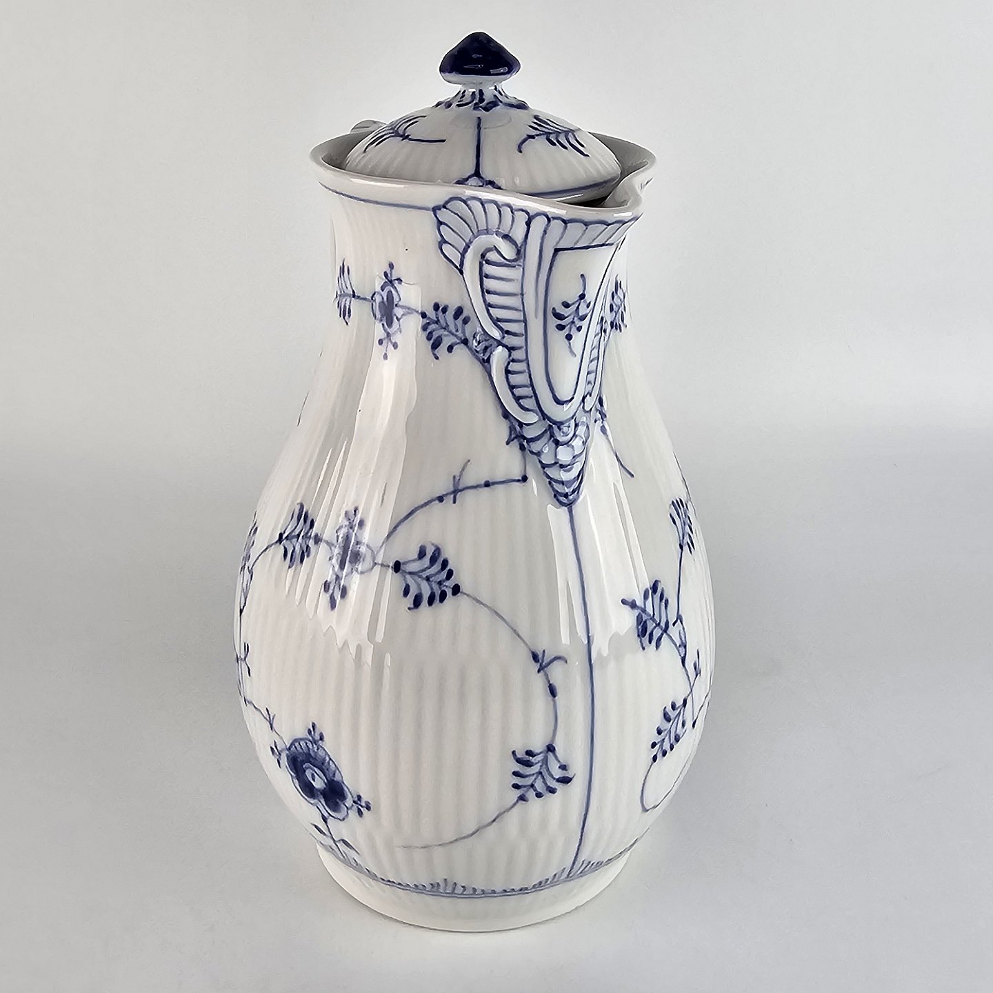 Kongelig kande til chokolade i porcelæn fra stellet Musselmalet riflet. Nr. 1/30