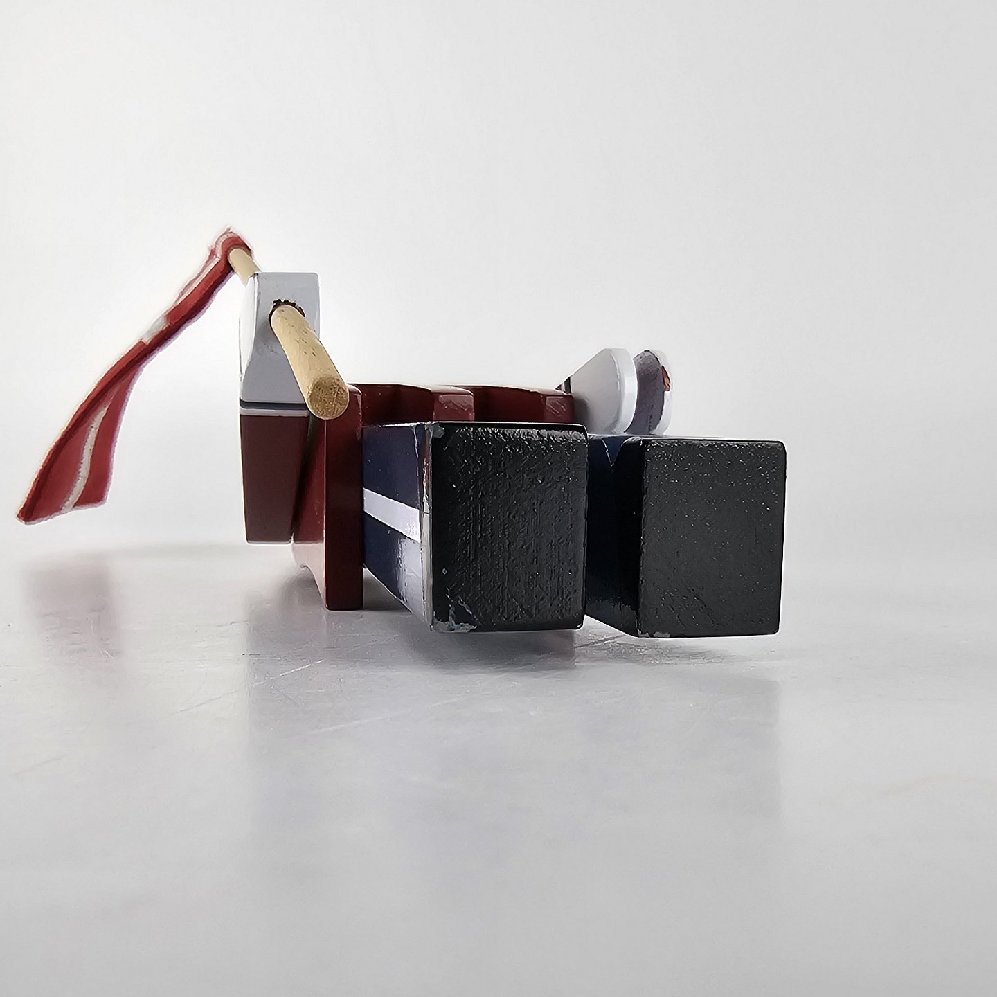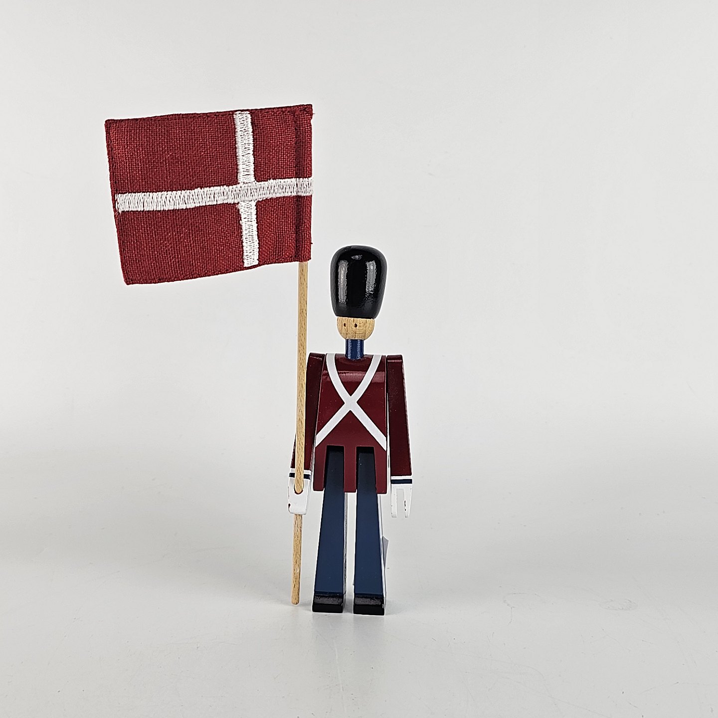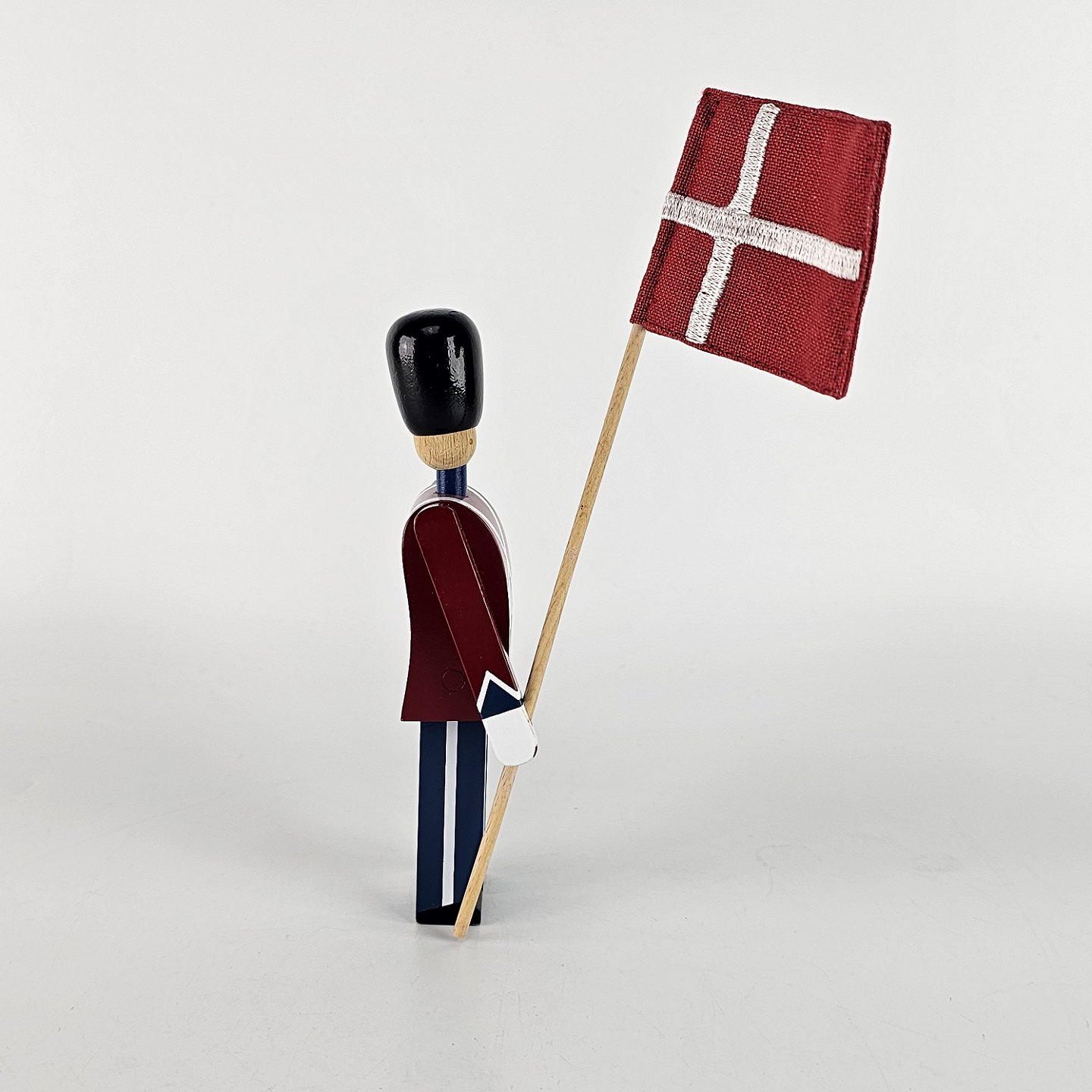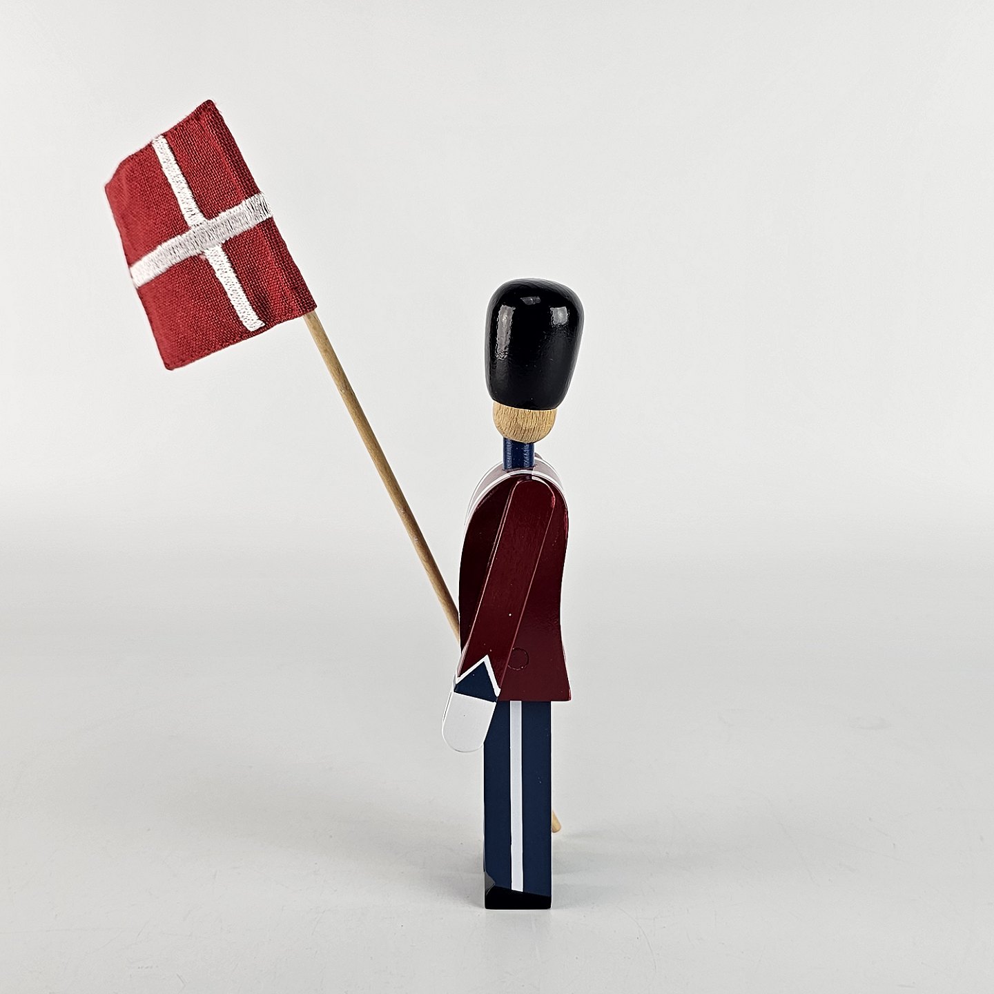 Figur i malet træ med motiv af en fanebærer i uniform og med flag