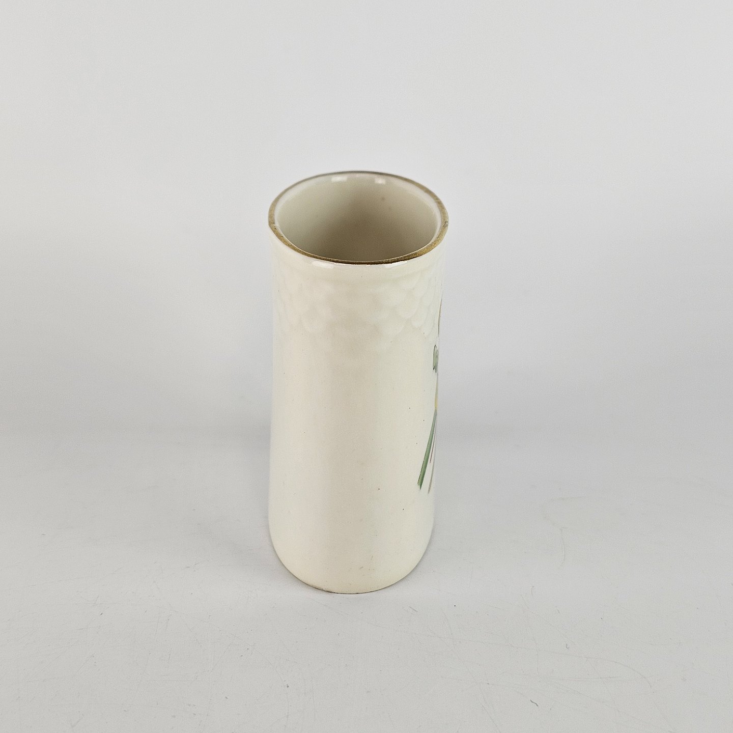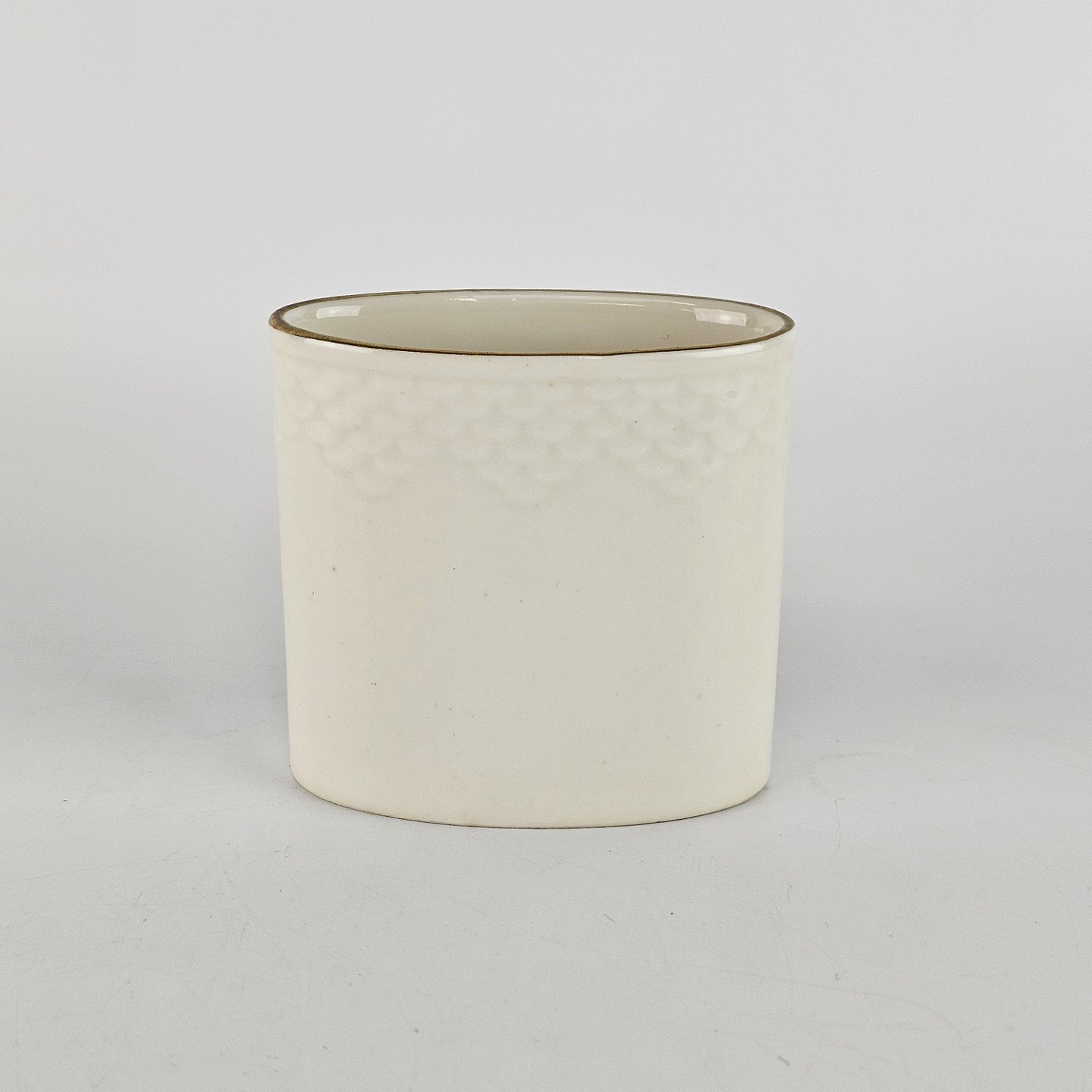 Njal er af creme farvet glaseret porcelæn, præget med skæl lignende mønster. Stellet er dekoreret med gul og blå blomster samt mønster af guld i kanten. Lettere brugsspor kan forekomme