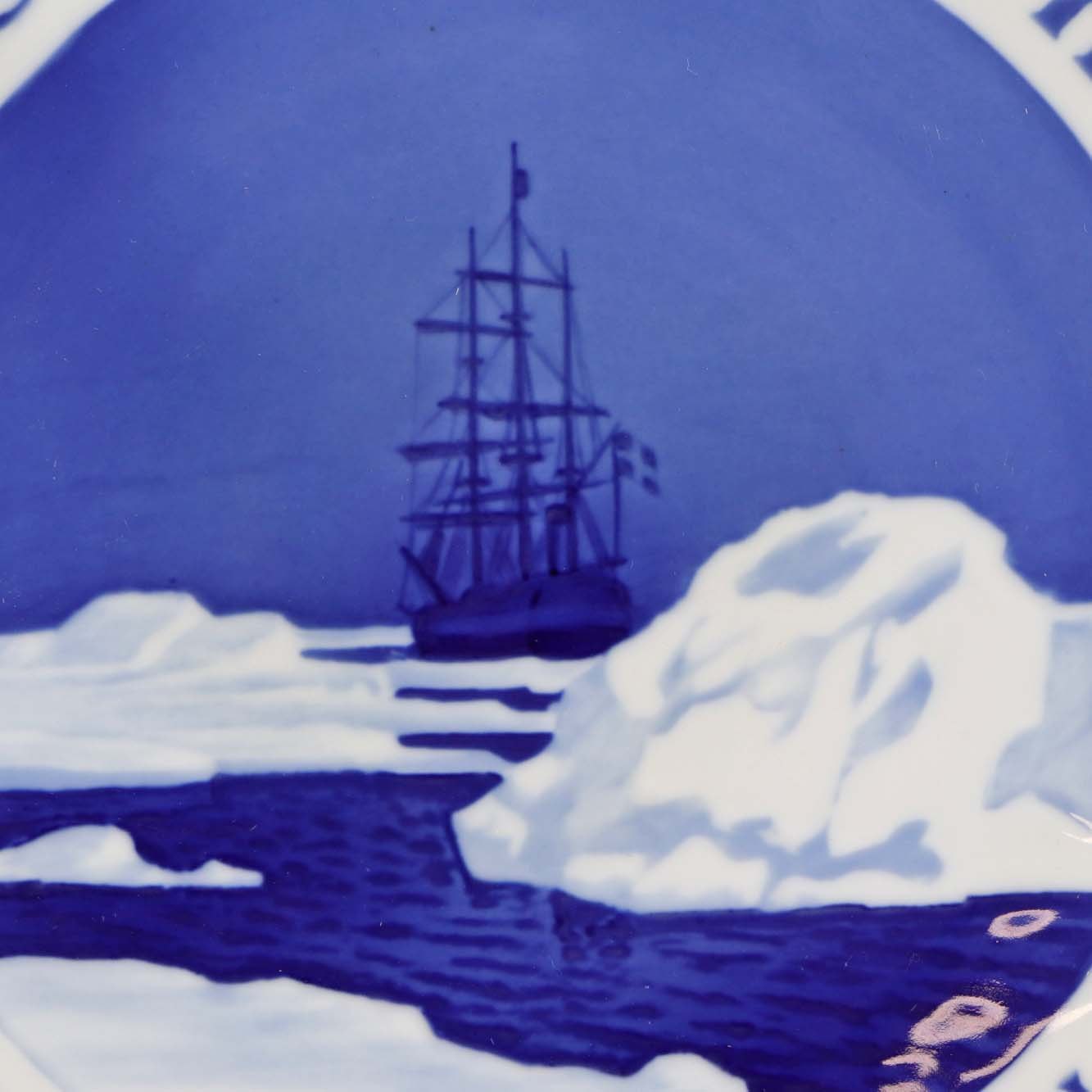 Norsk fremstillet mindeplatte i porcelæn med teksten Mylius, Brønlund og Hagen. Danmarks-ekspeditionen 1906-08