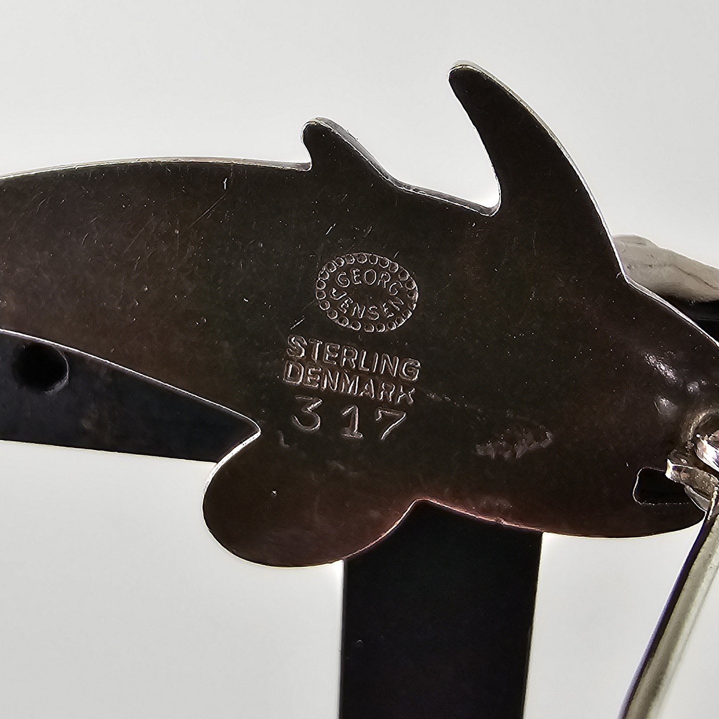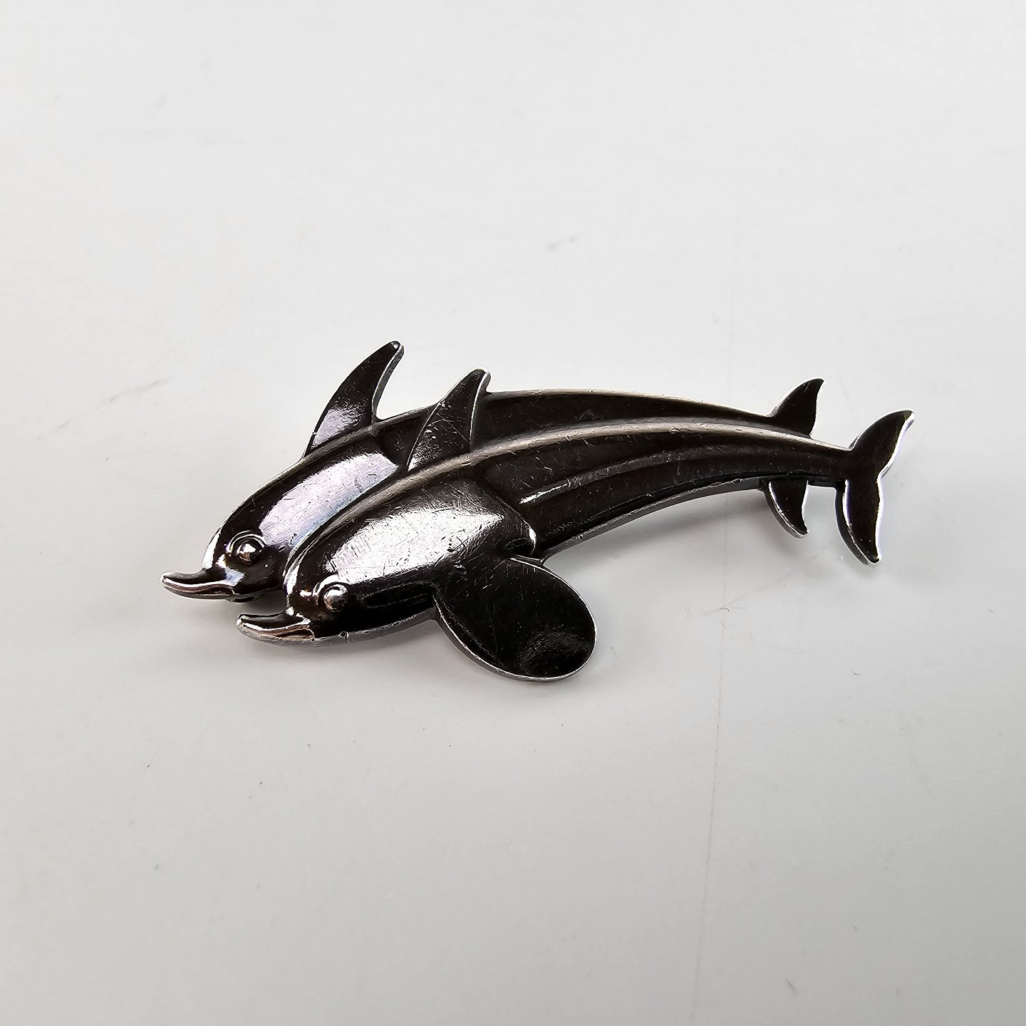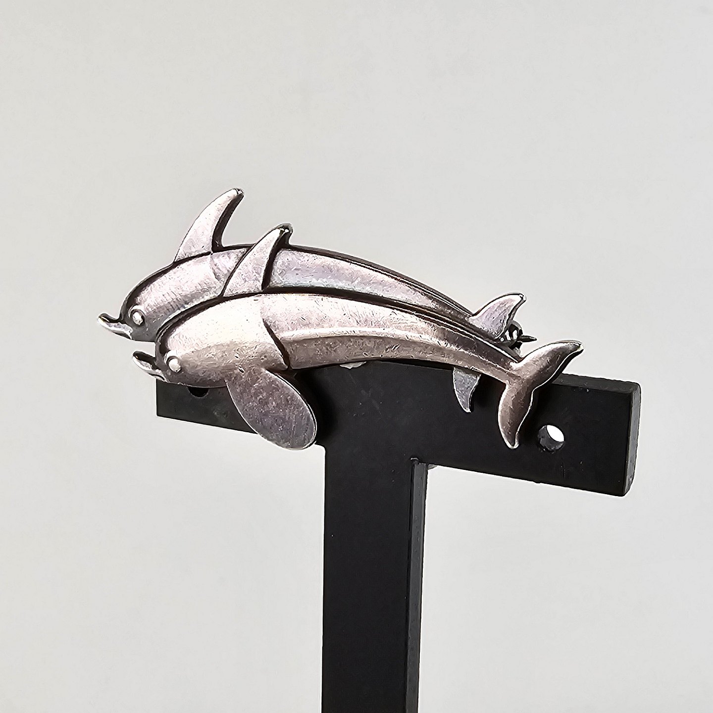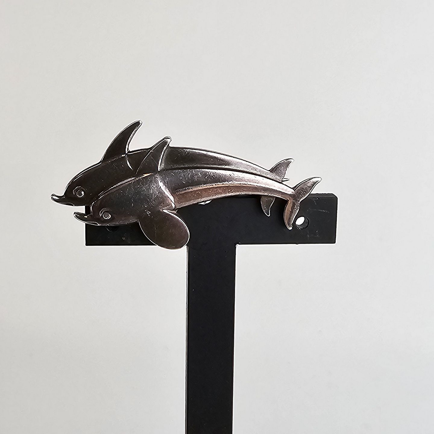 Broche nr 317 i sterlingsølv med motiv af to delfiner.