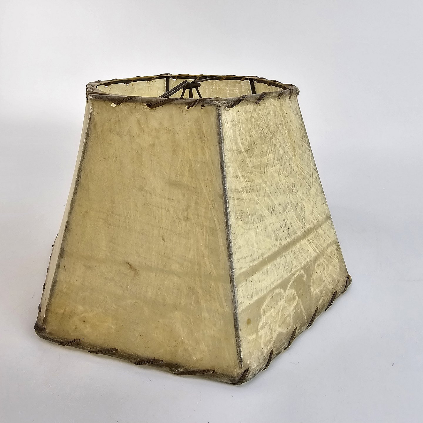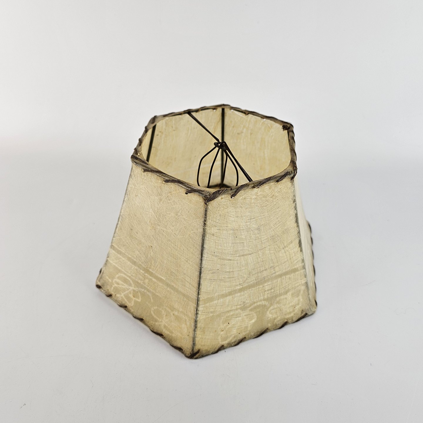 Fire lampeskærme lavet af svineblærer. Der er ridset mønstre ind i dem.