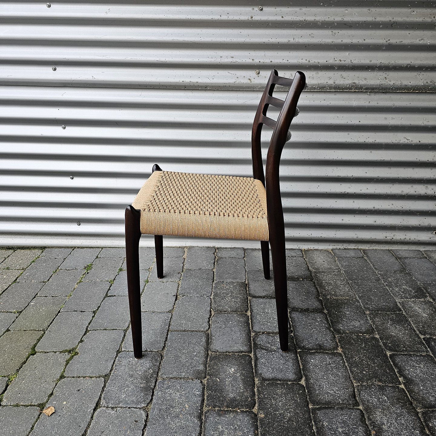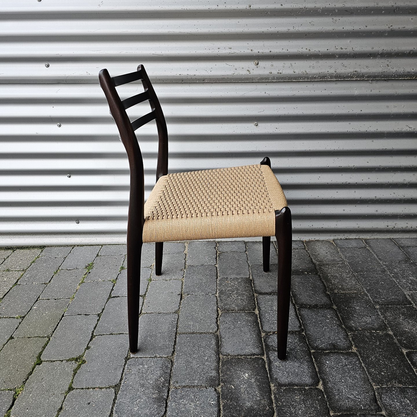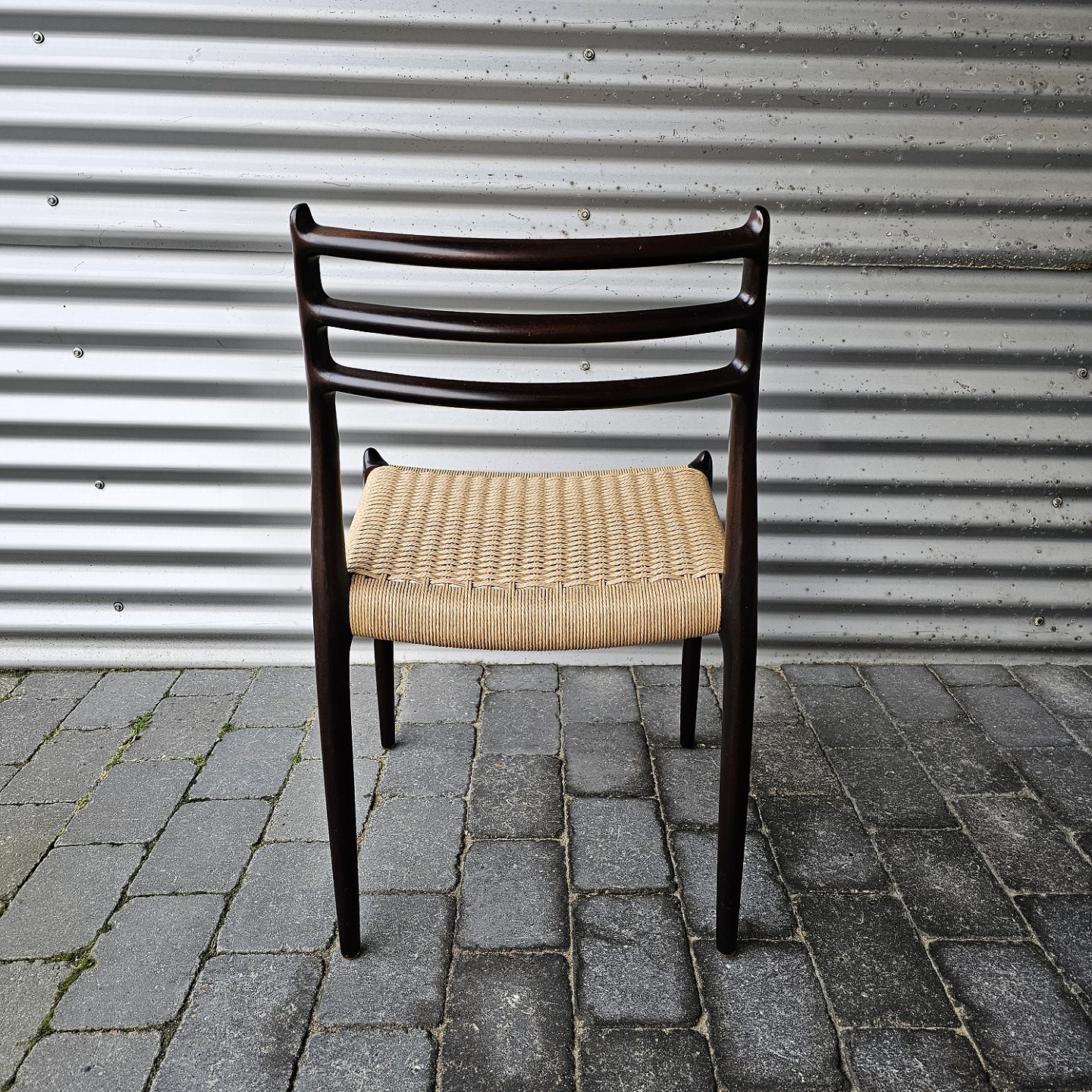 Sæt med fire spisebordsstole model 78 i mørk mahogni med flettede sæder