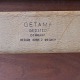 Tre personers sofa med sove-udtræk og stel i lakeret egetræ. Sæde og ryghynde er med springfjeder og betrukket med mørkebrunt uldstof . Møblet er en sovesofa, som udtrukket kan rumme to personer. Model GE-77