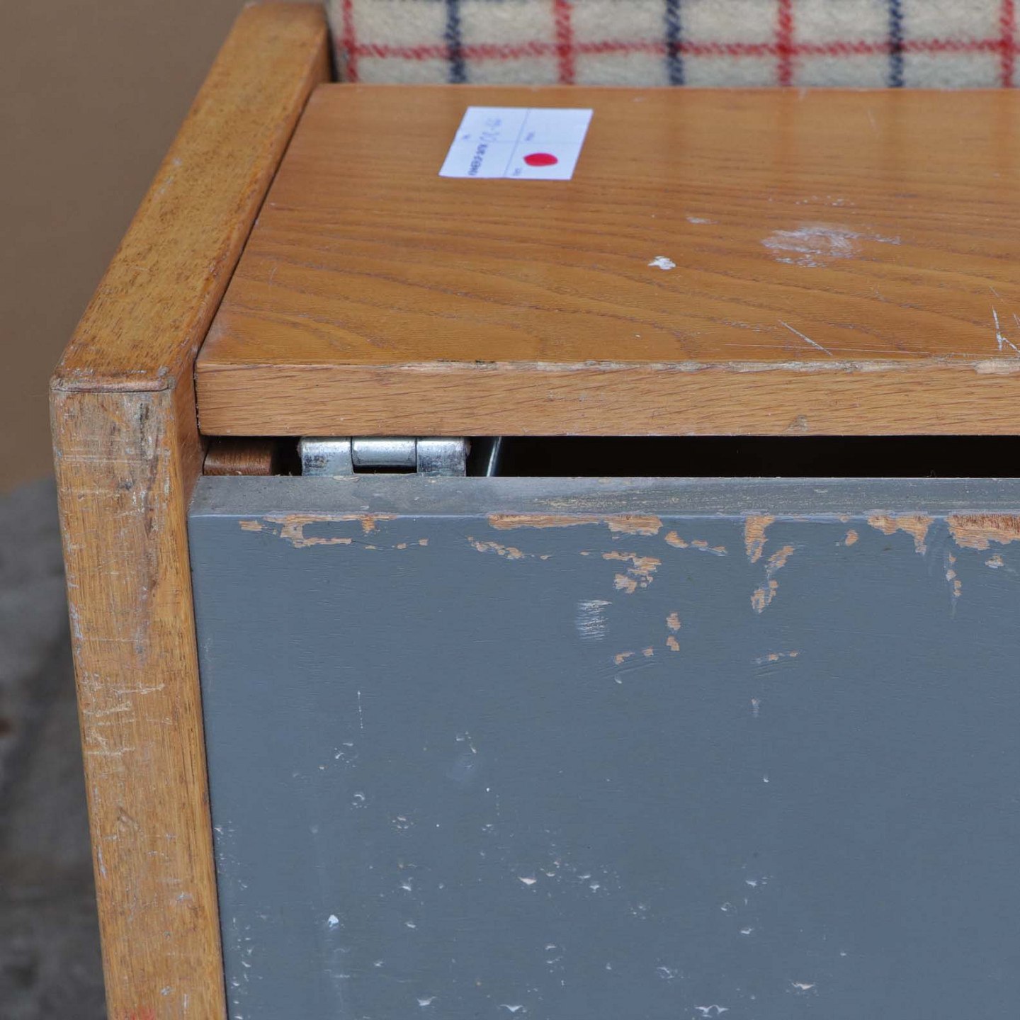 Sæde og ryghynde er med springfjedre og betrukket med ternet uldstof.