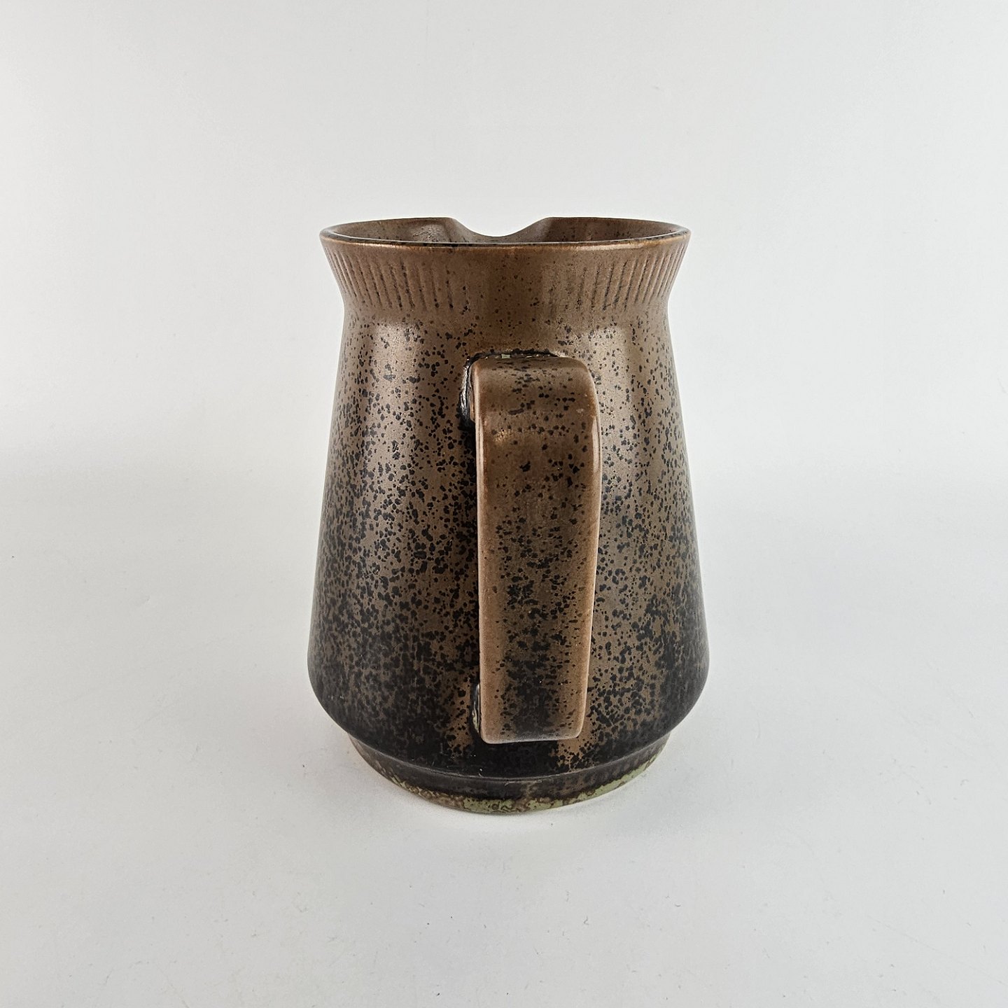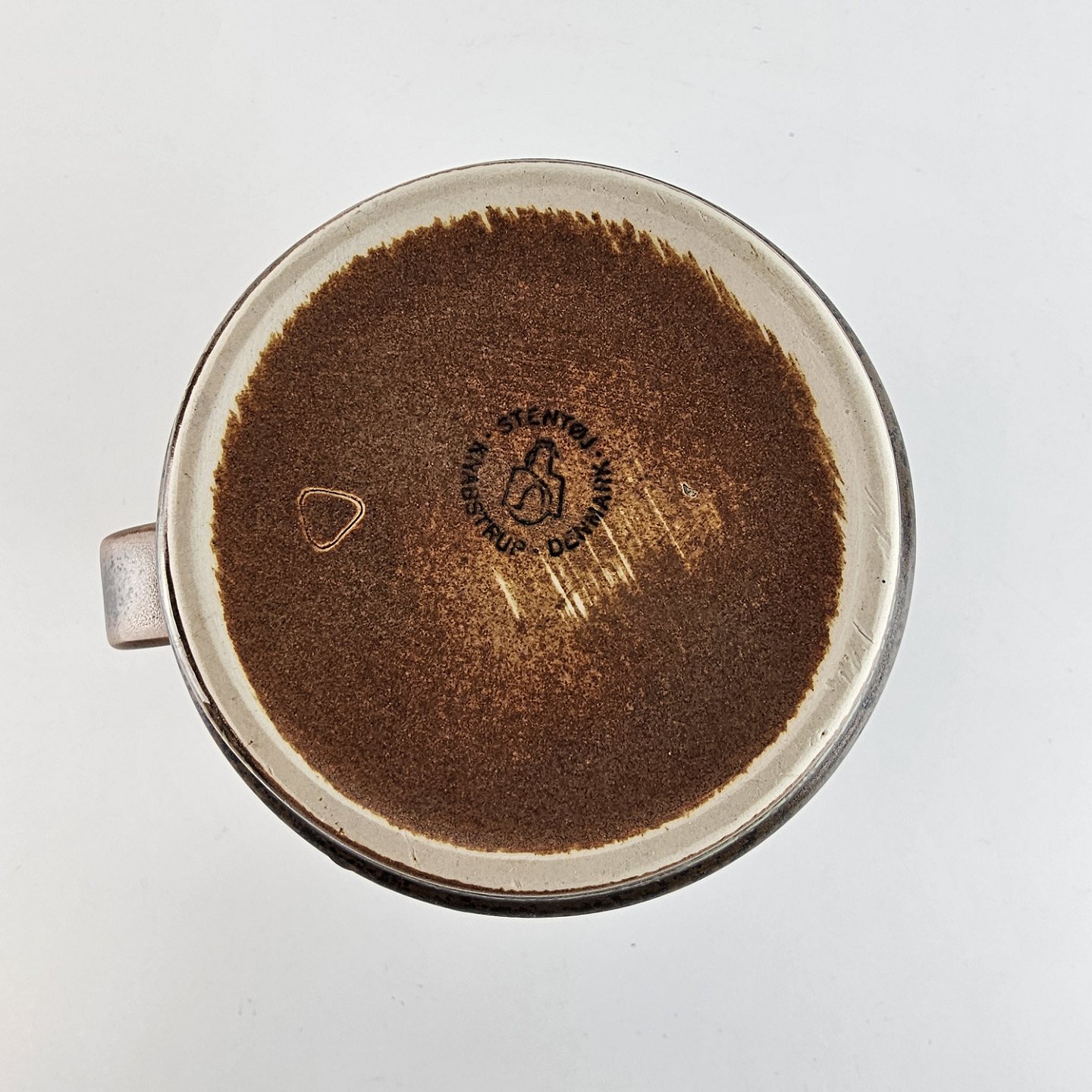 Kande af stentøj og dekoreret med en brun nuance glasering.