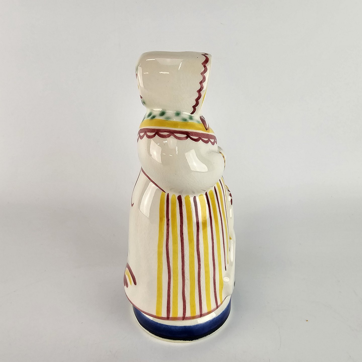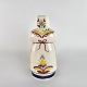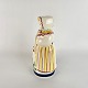 Lysestage af fajance formet som en kvinde med en høne.
