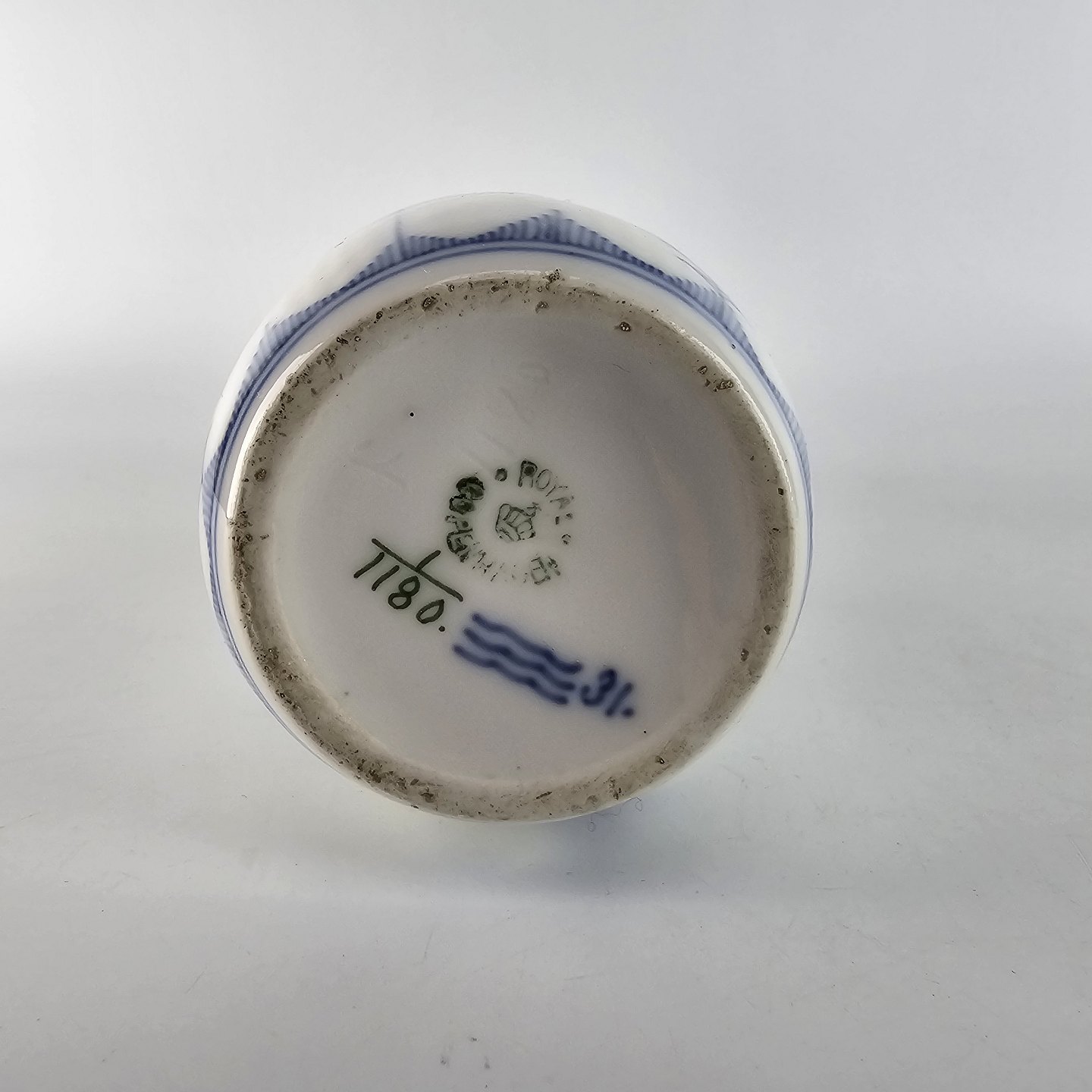 Kongelig eddikekande i porcelæn fra stellet Musselmalet riflet.