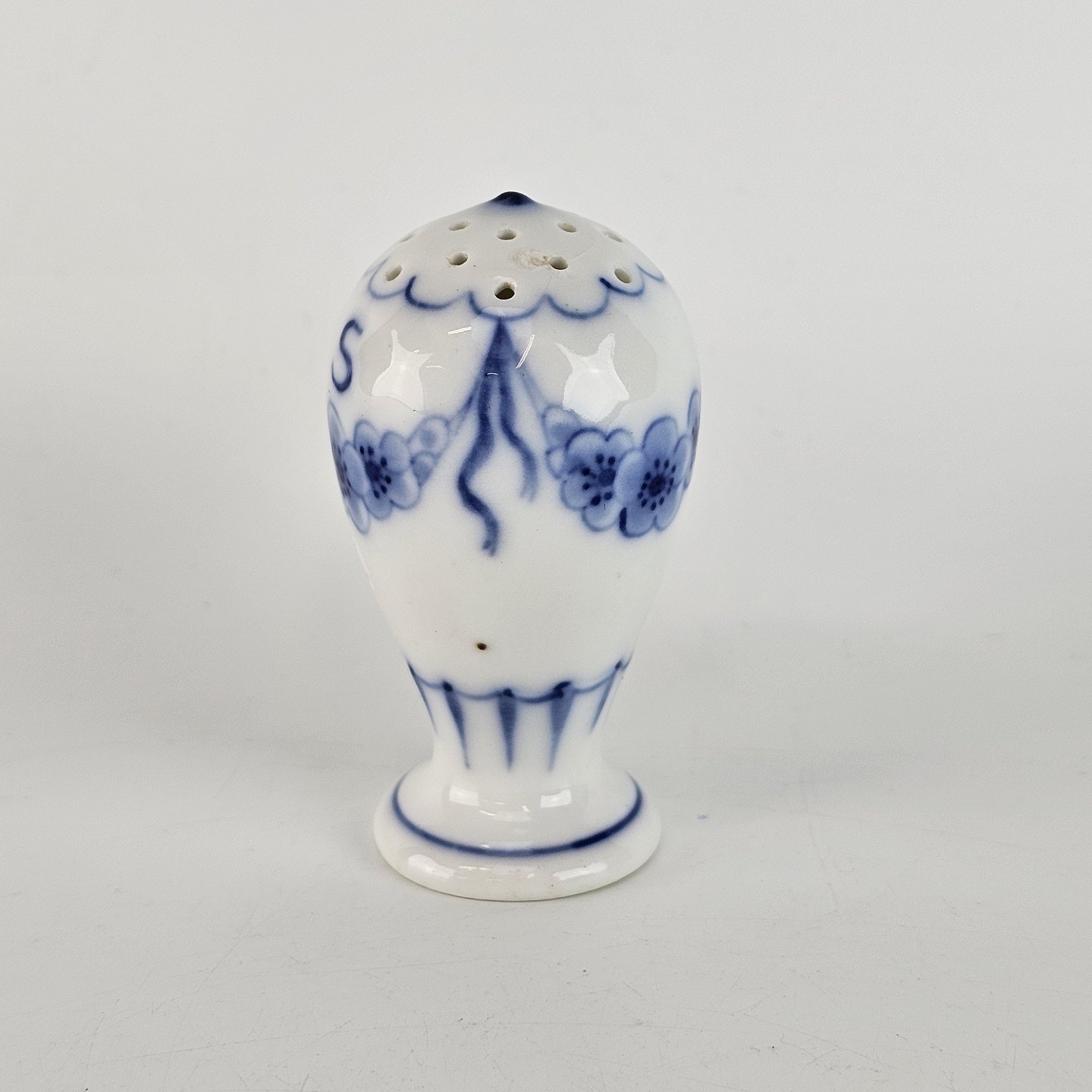 Hvidt porcelæn med motiv af guirlander med blå blomster