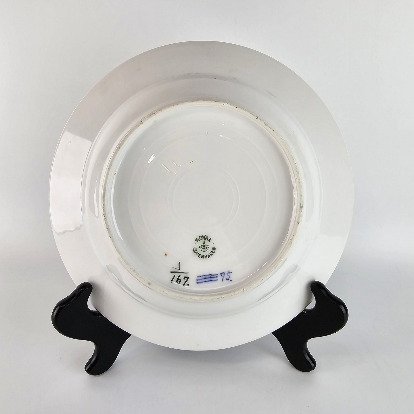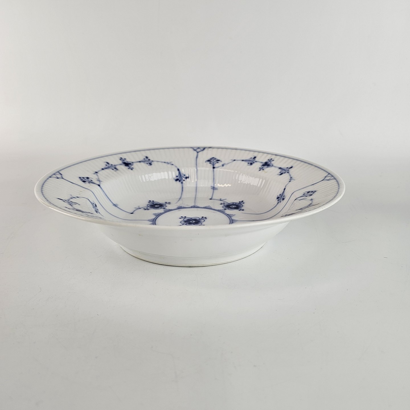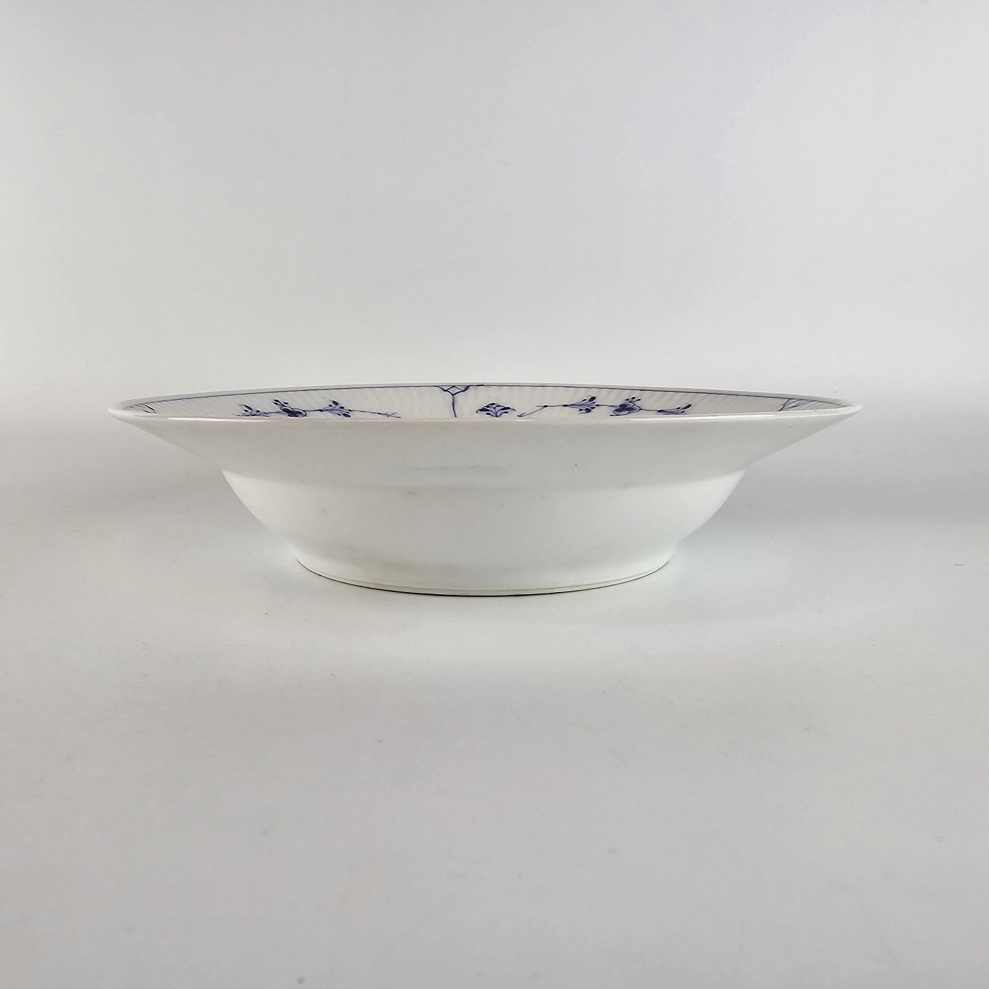Kgl dyb tallerken fra stellet Musselmalet, riflet. Nr 1/167.