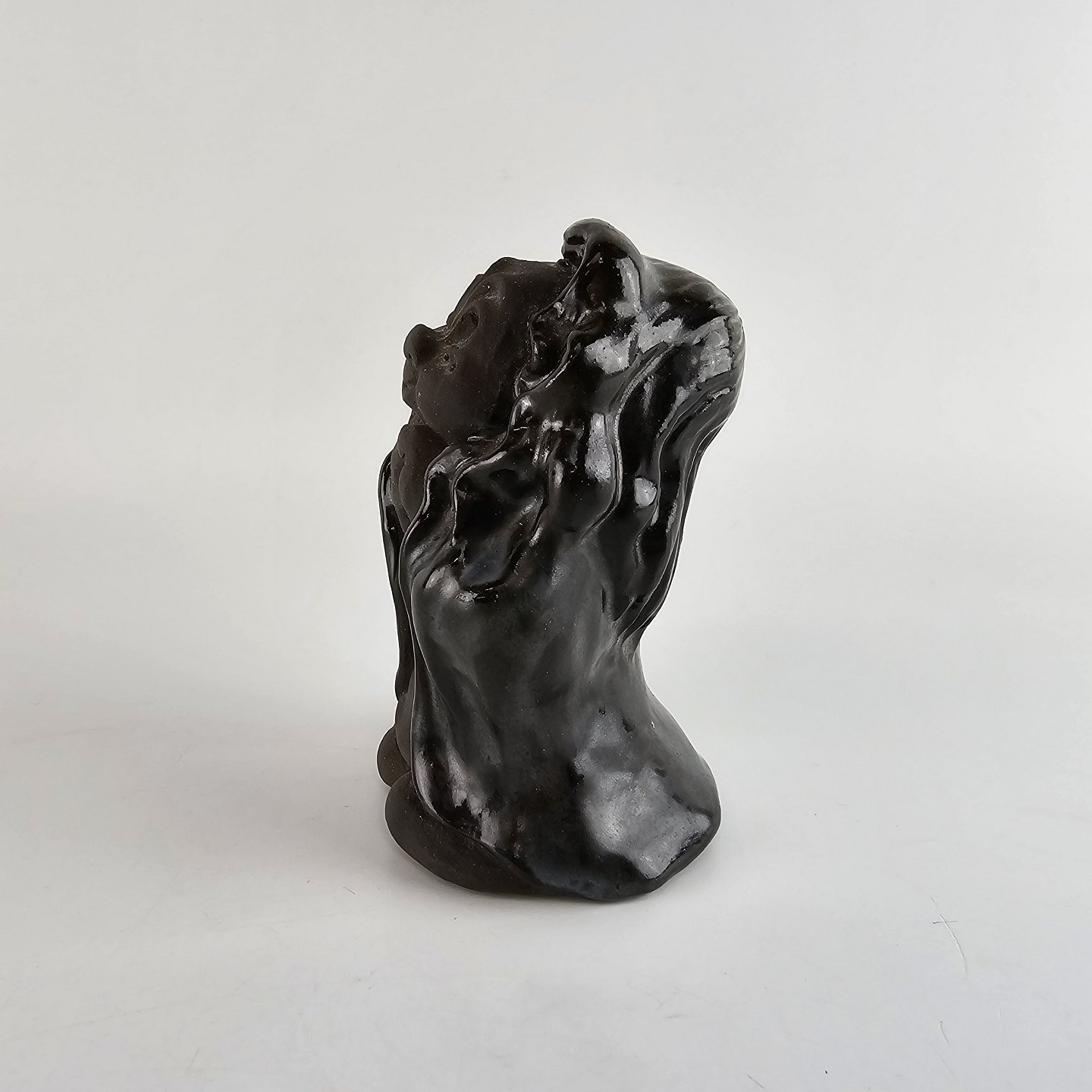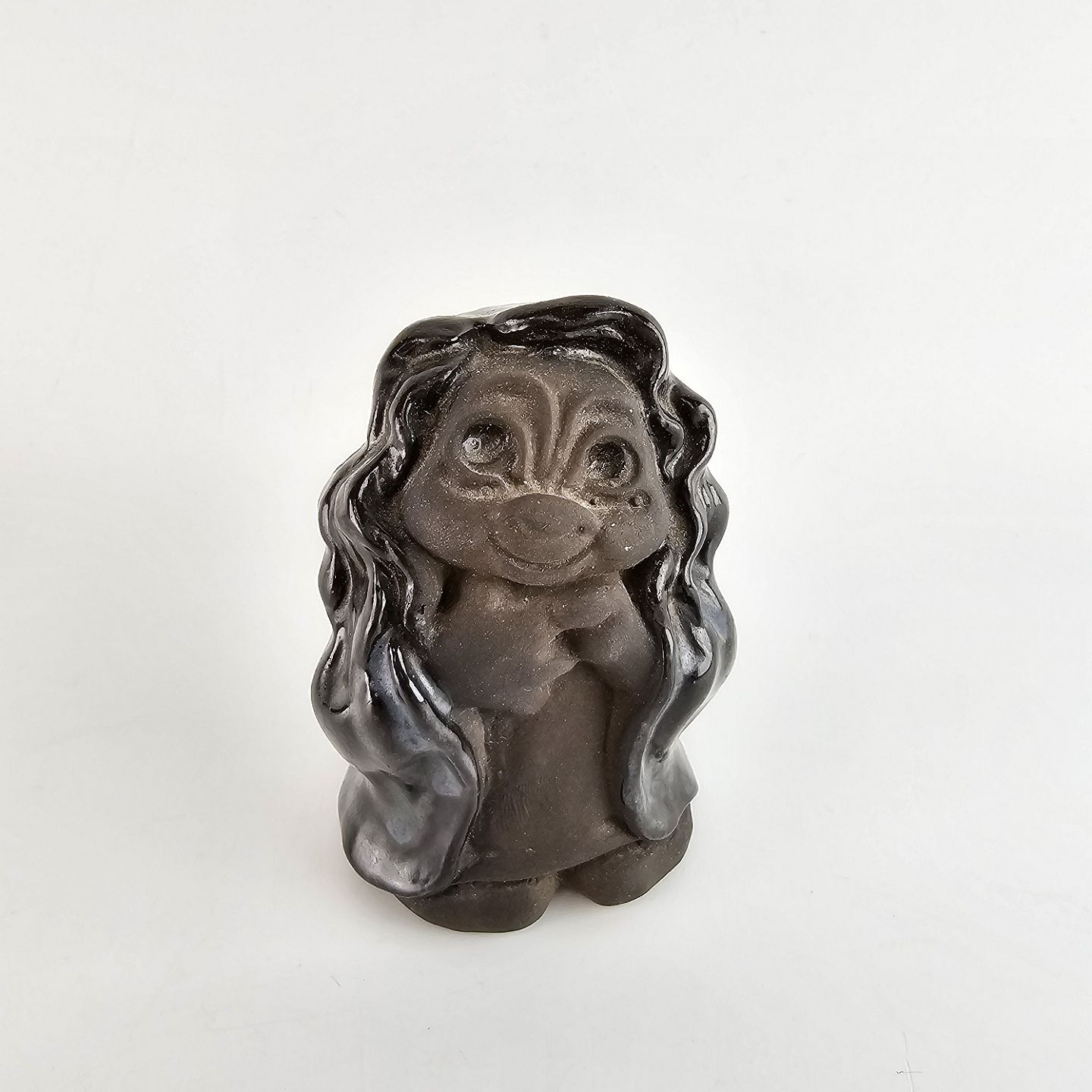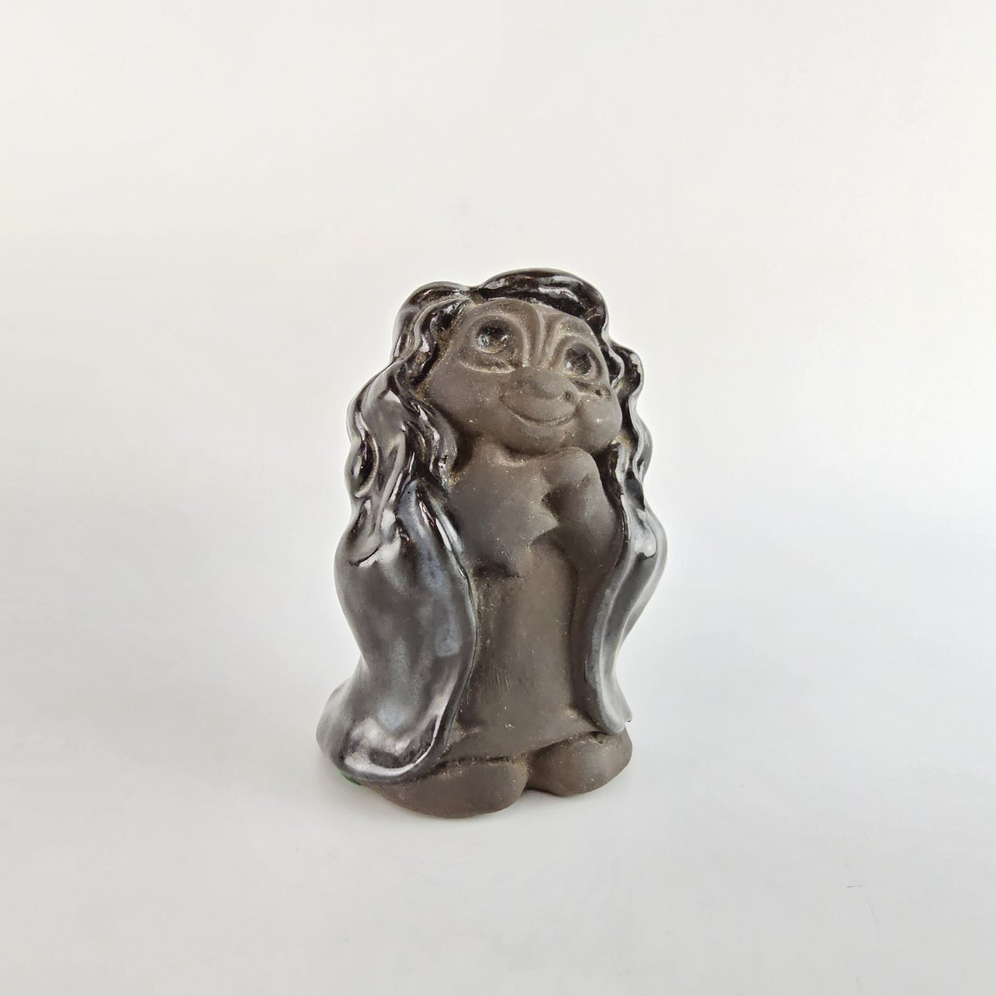 Figur i keramik med motiv af en kvindelig gjøltrold. Figuren er delvist glaseret med sort glasur