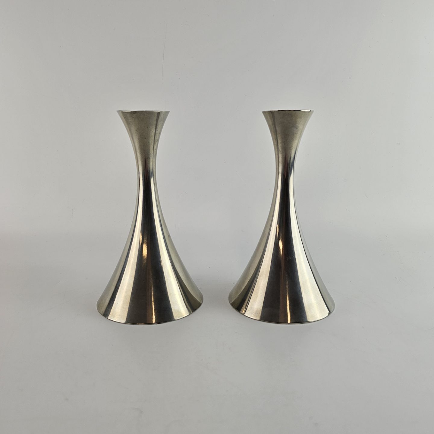Et sæt tragtformede lysestager i støbt tin. Nr. 2691