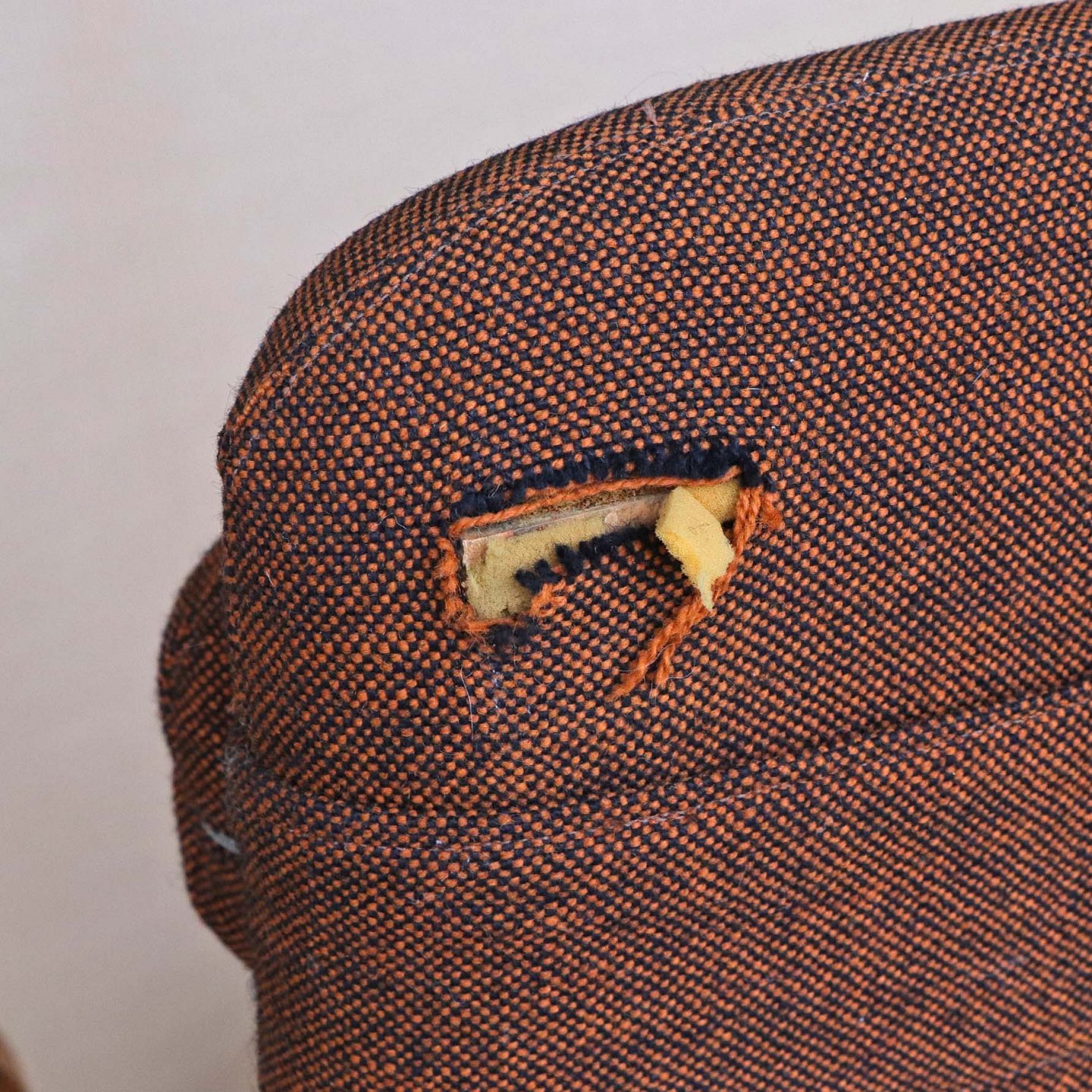 Fremstår med brugsspor på stel og hul i stof