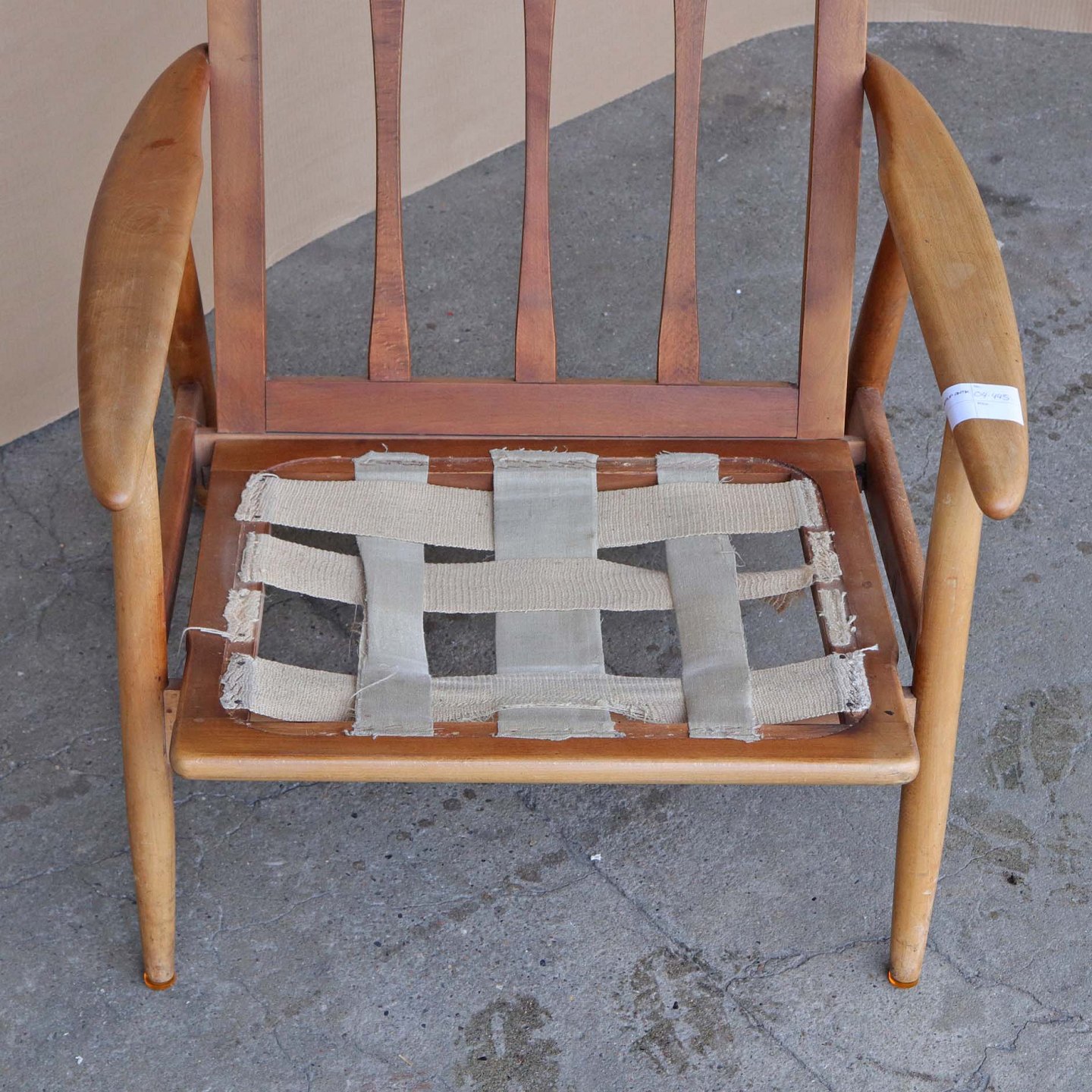 Fremstår med brugsspor på stel og stof. Trænger til ompolstring og ny sædebund