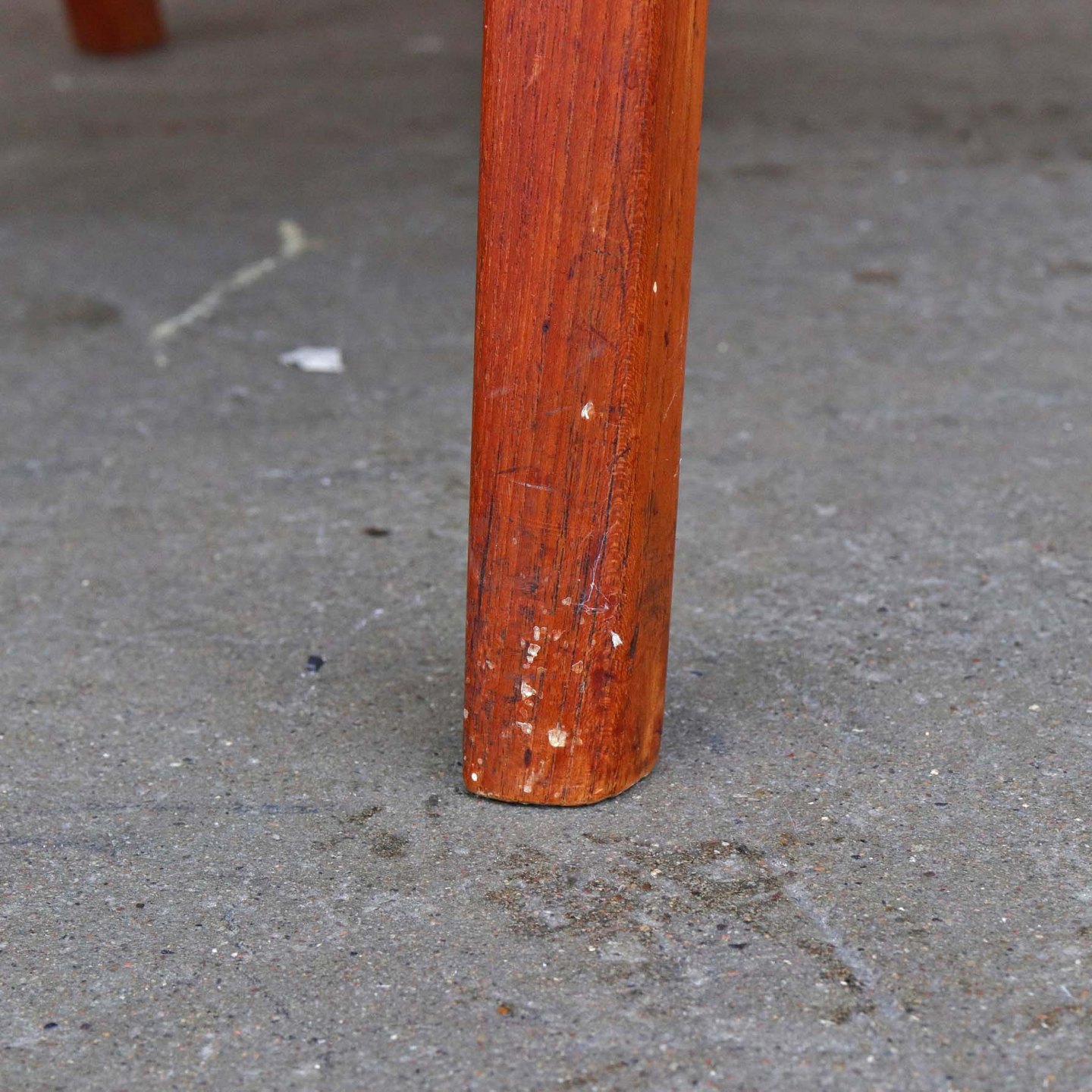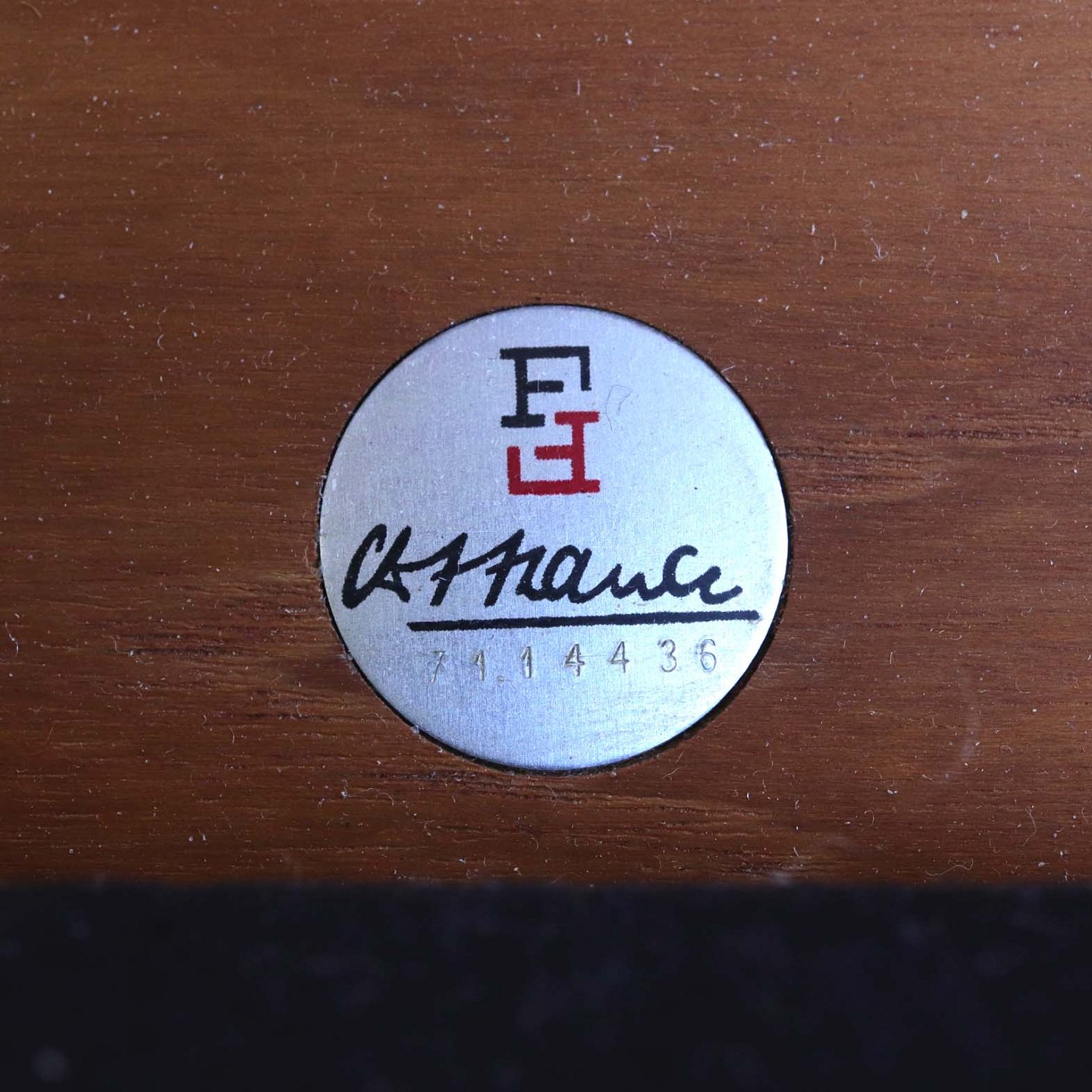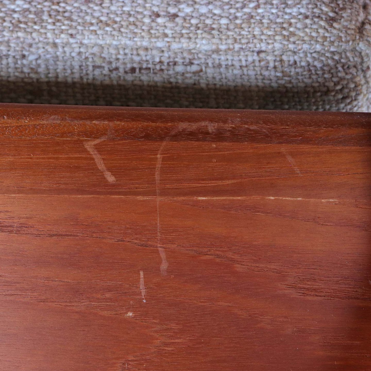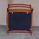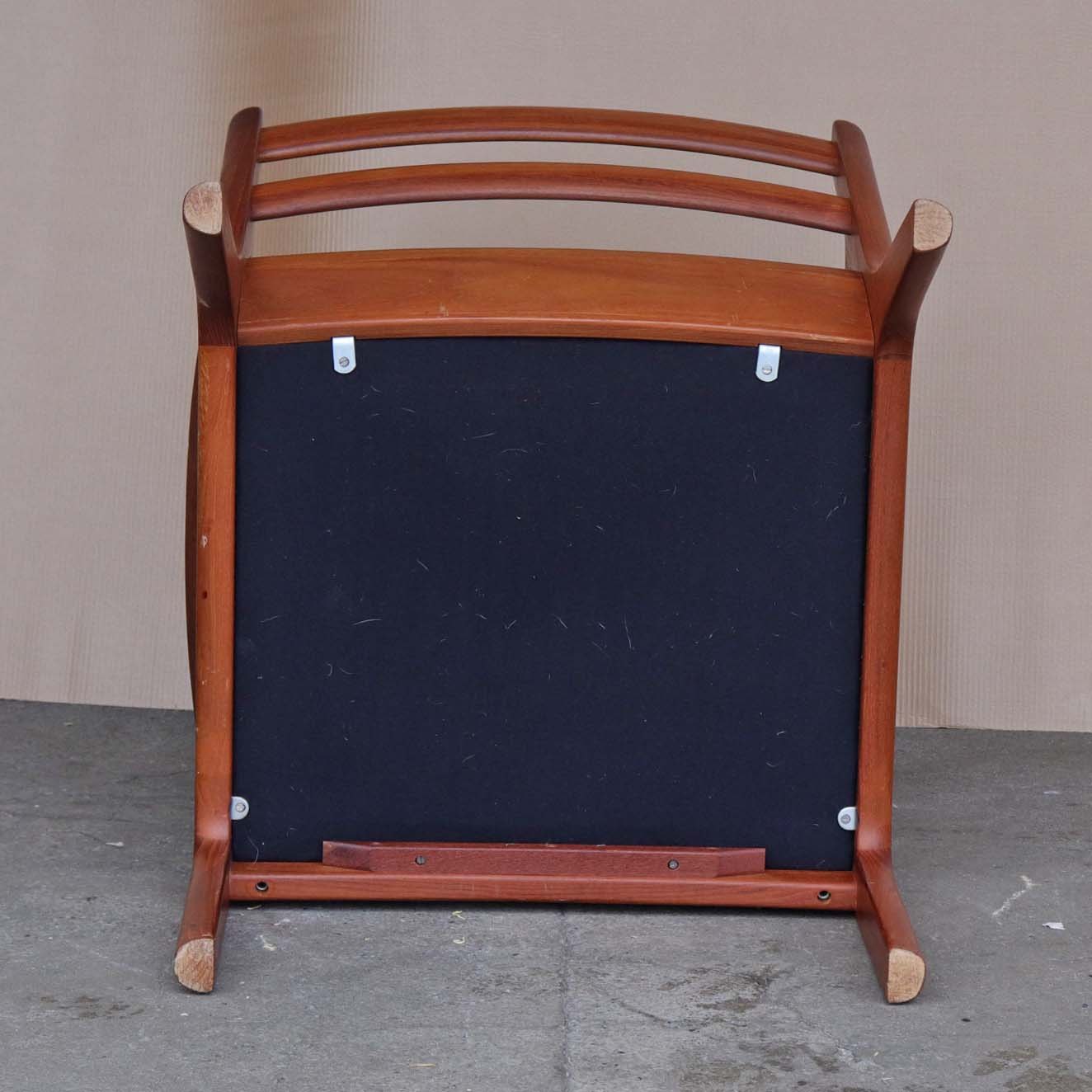 Lænestol med stel i lakeret teaktræ og springhynder betrukket med lys beige meleret uldstof. Model Senator