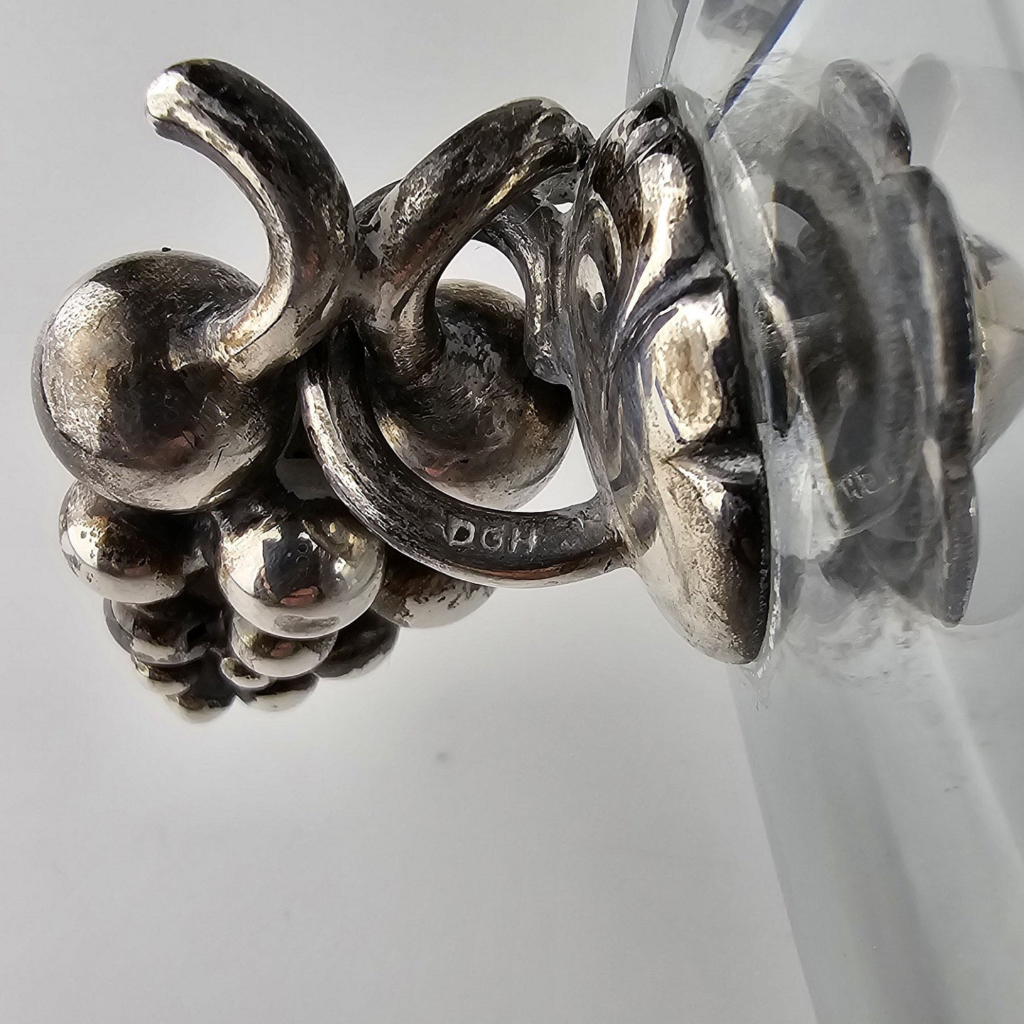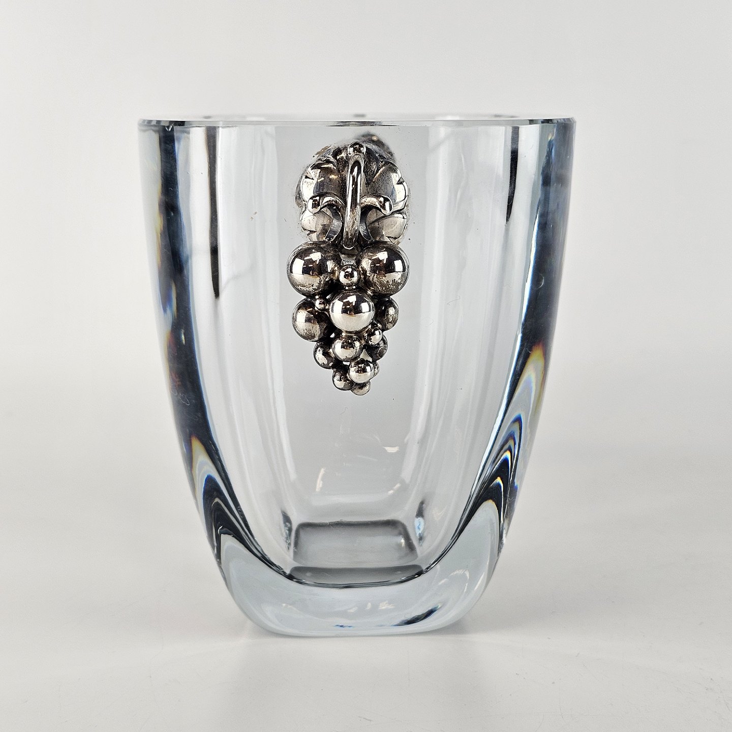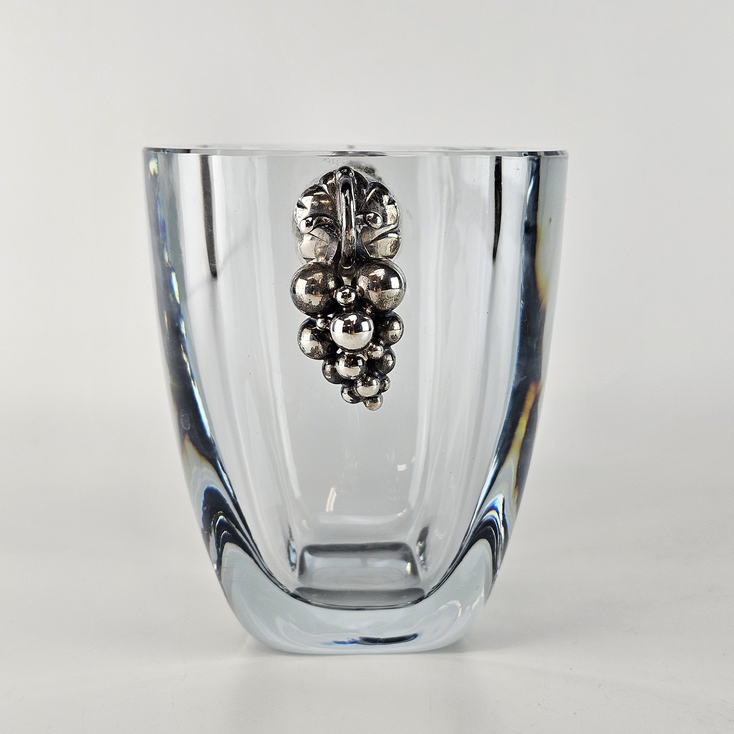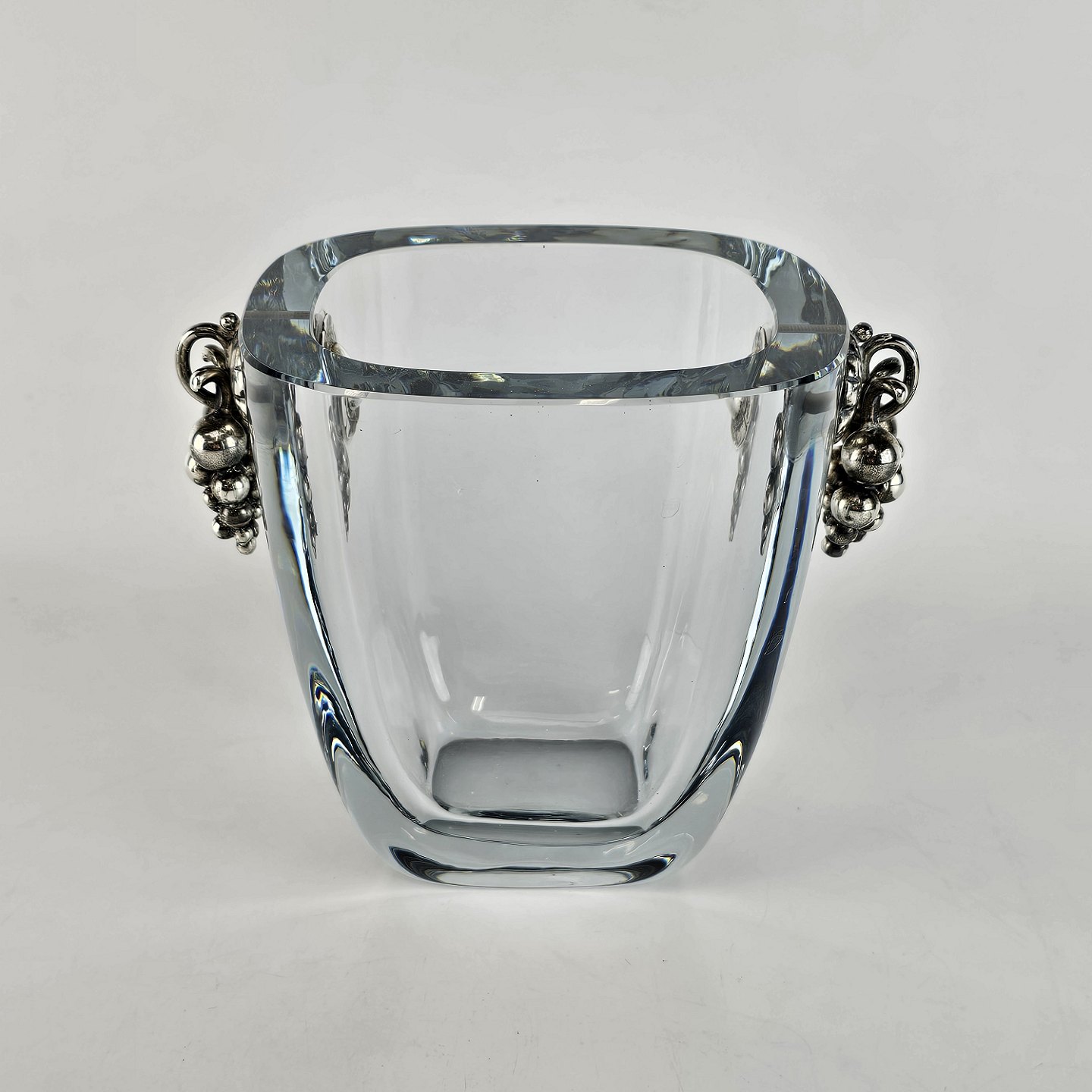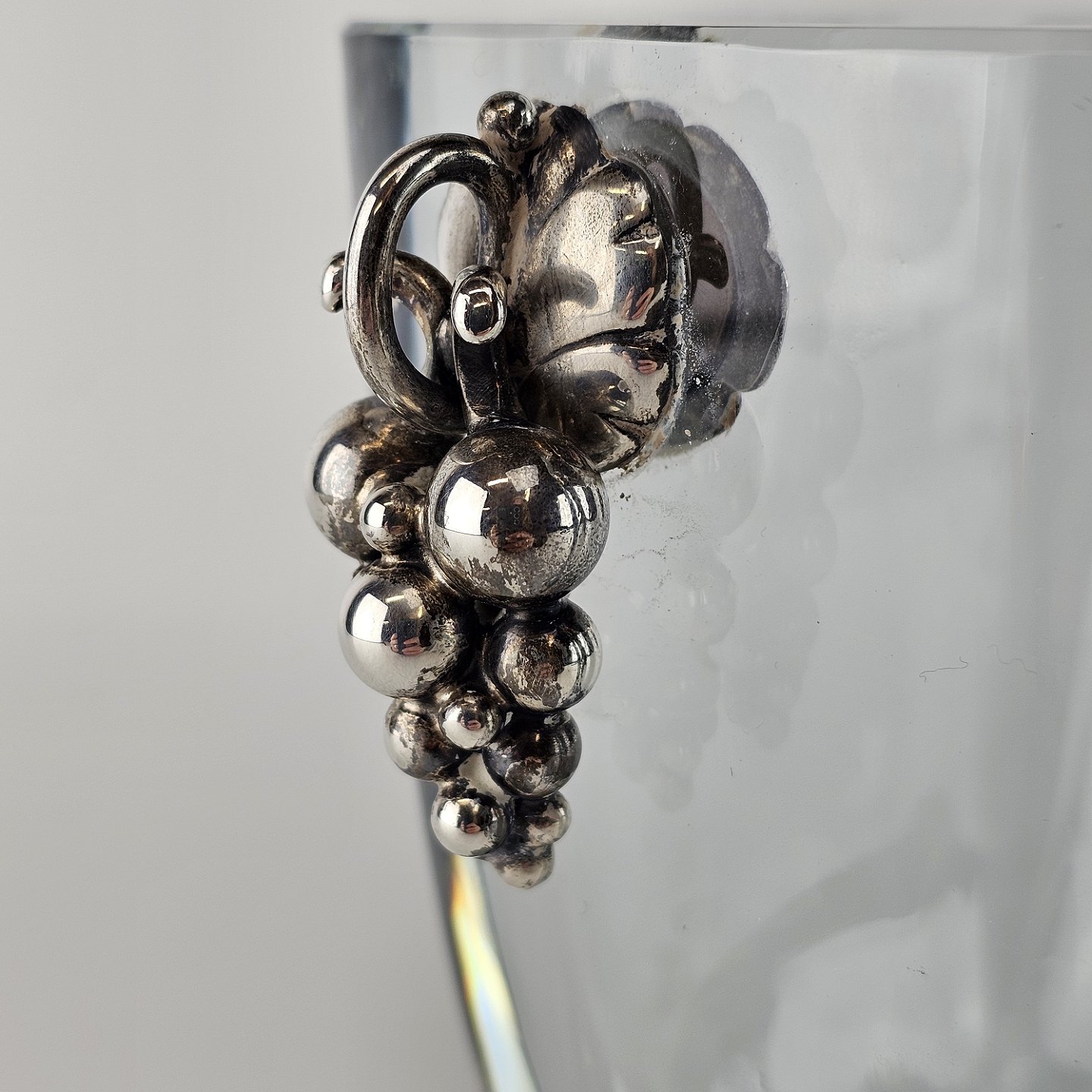 Isspand i klart lyseblåt glas og hanke i sterling sølv med motiv af druer