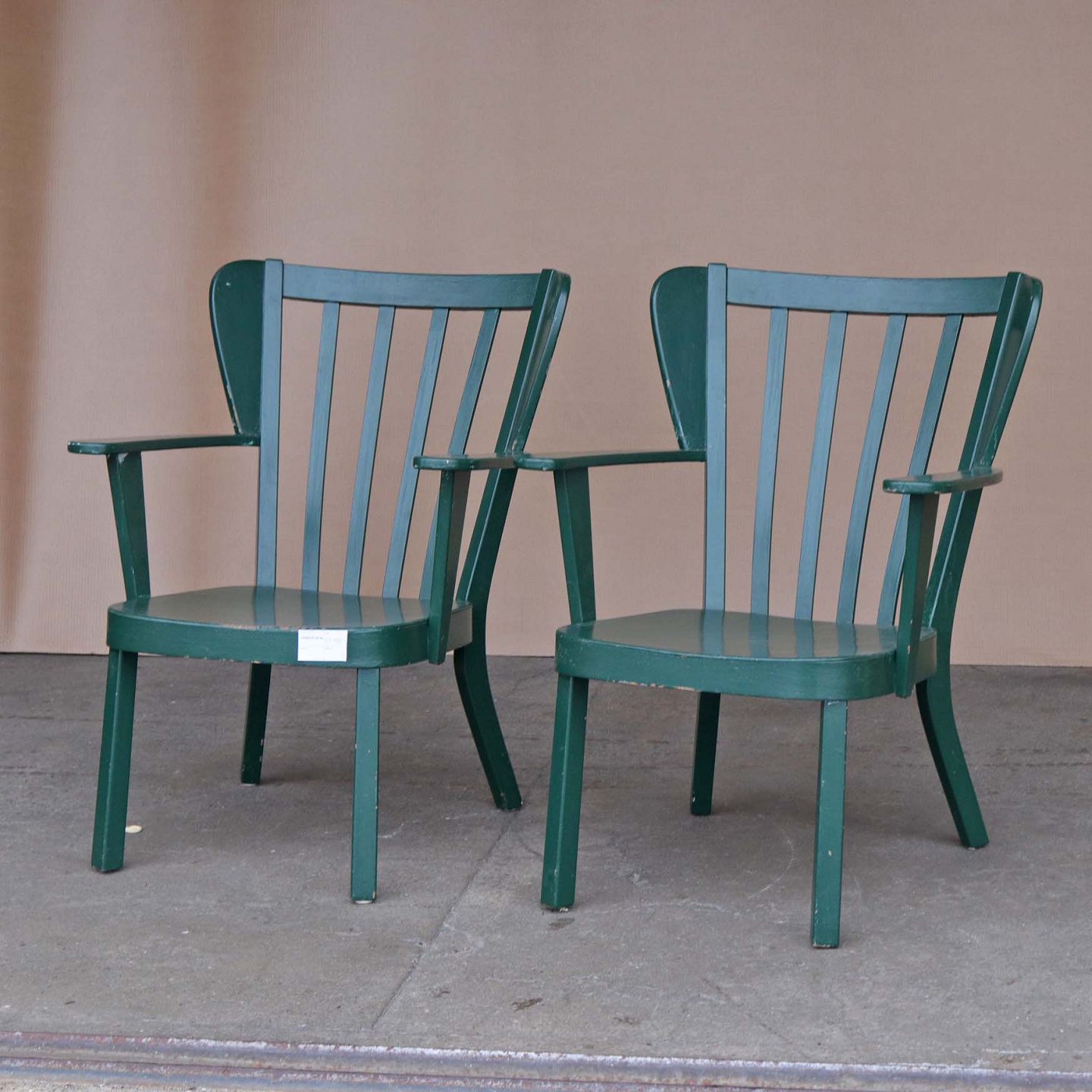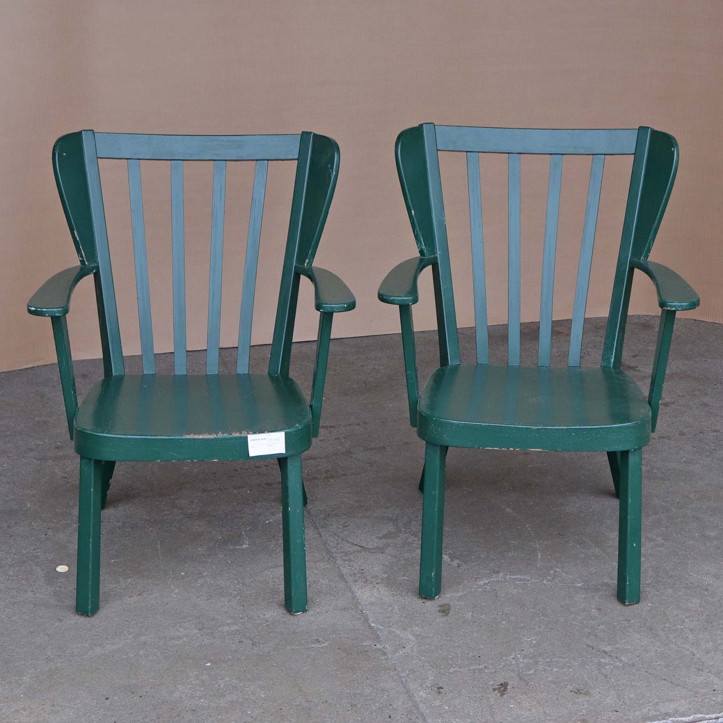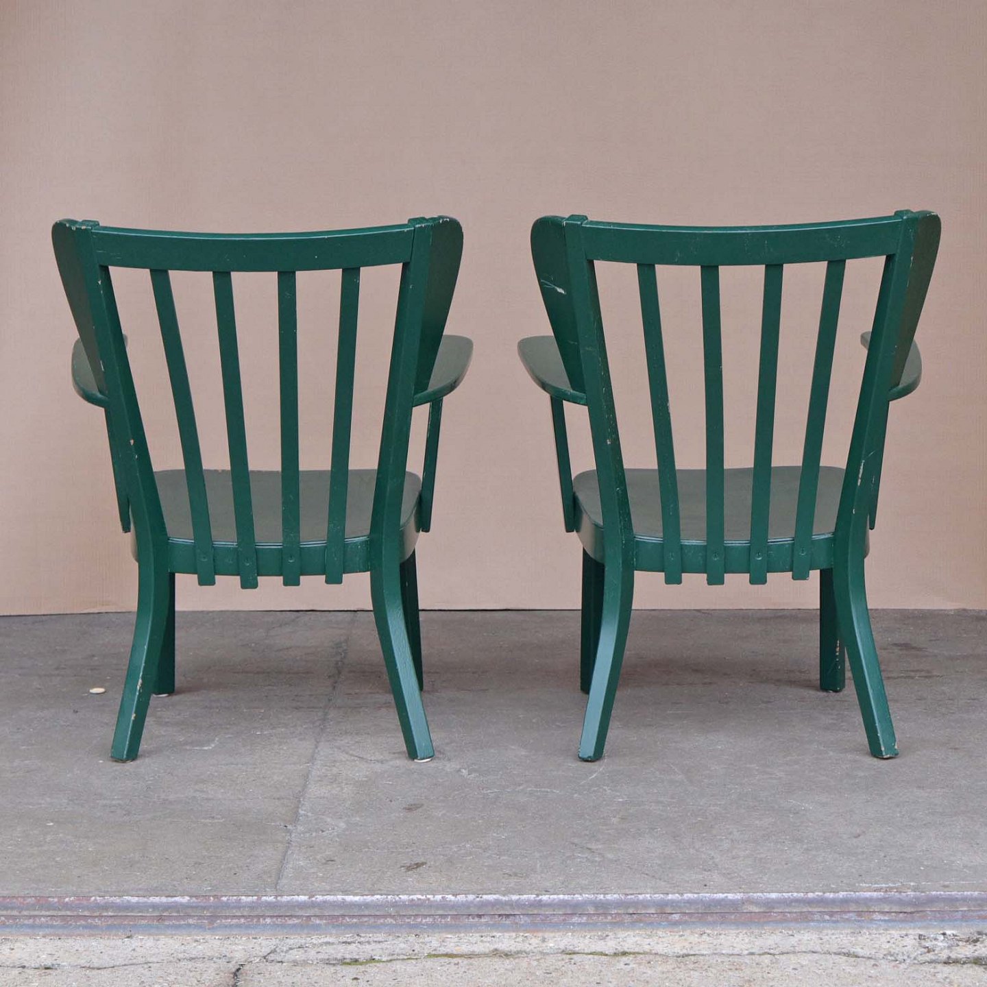 Et sæt armstole med stel i grønmalet træ. Model Canada