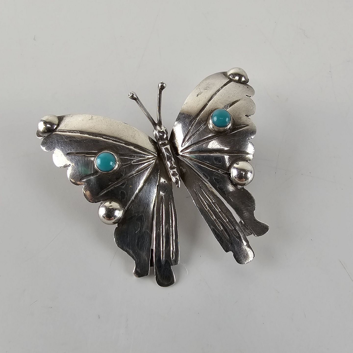 Broche i sterlingsølv formet som sommerfugl, med to sten af Turkis.