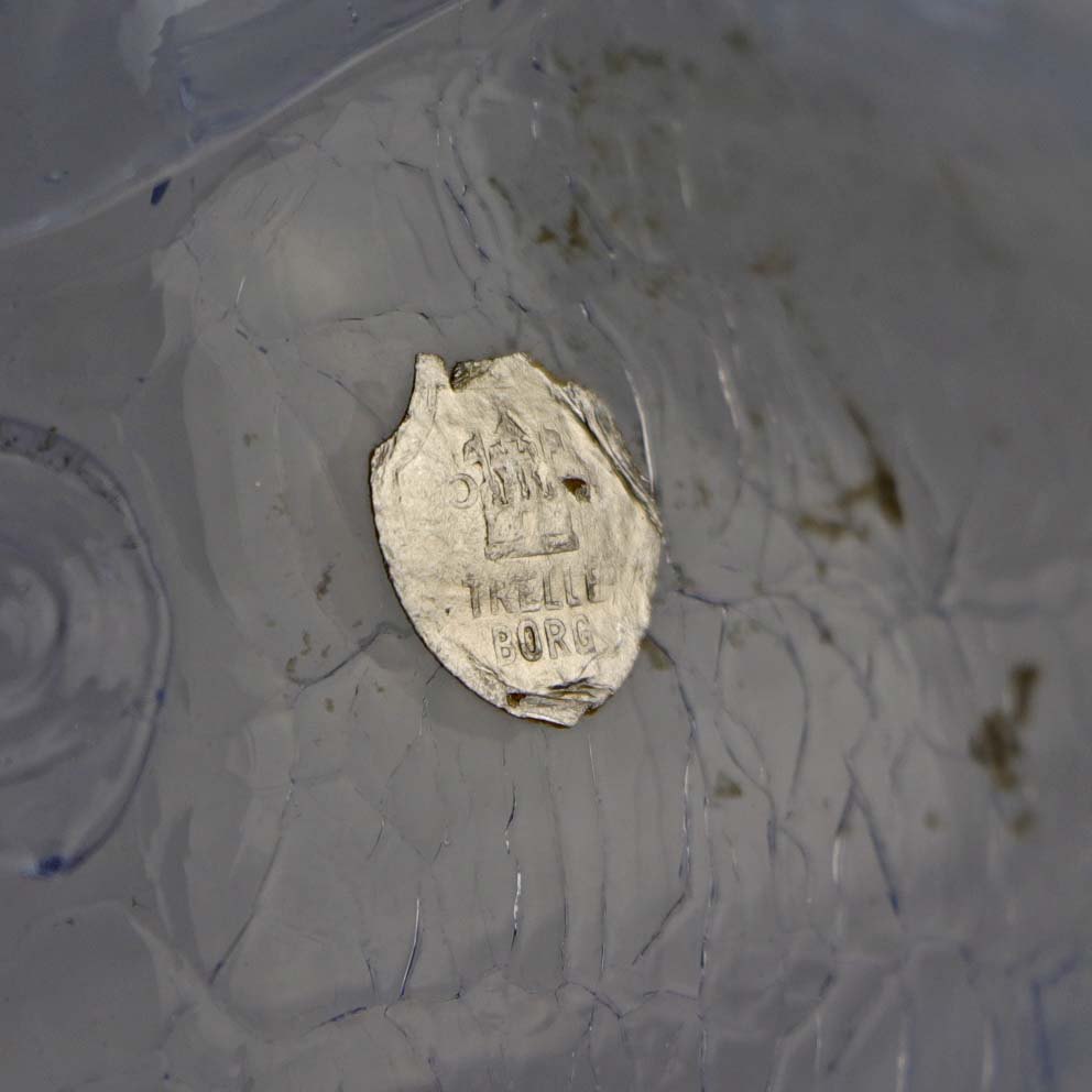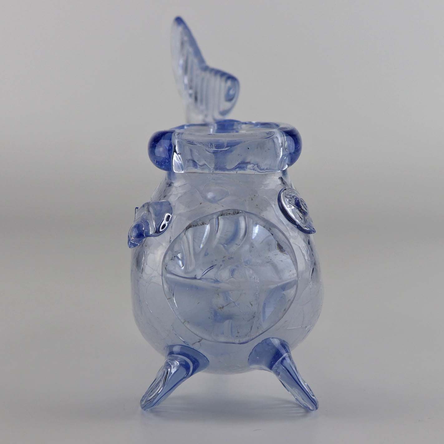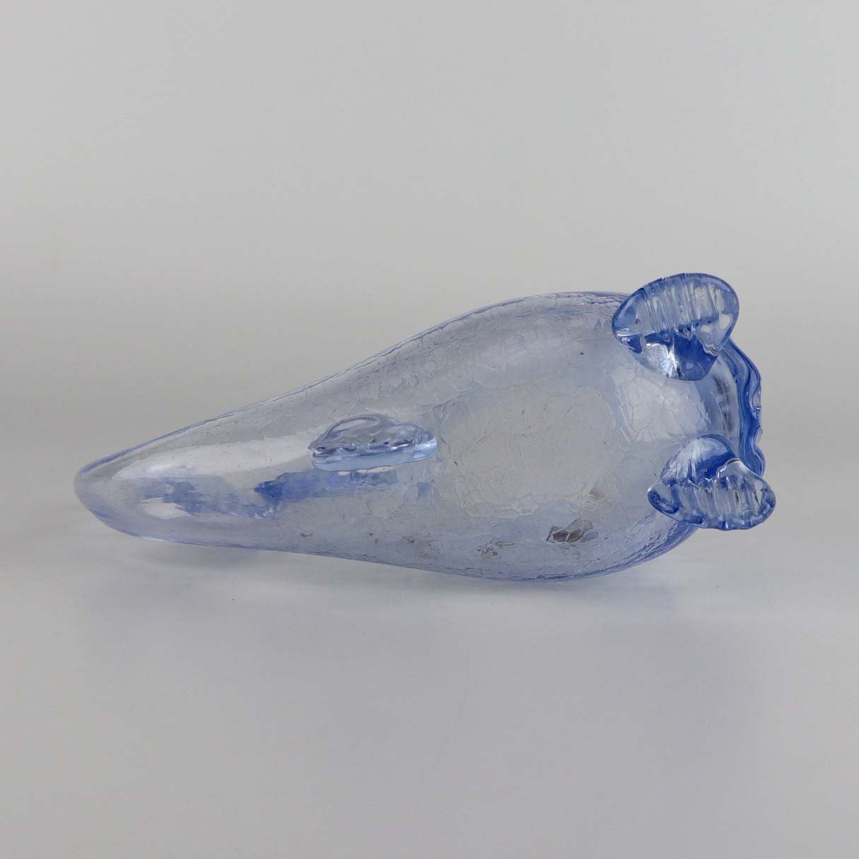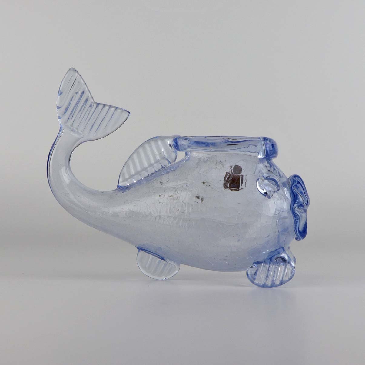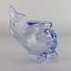 Vase i lyseblå glas med motiv af en fisk med store læber