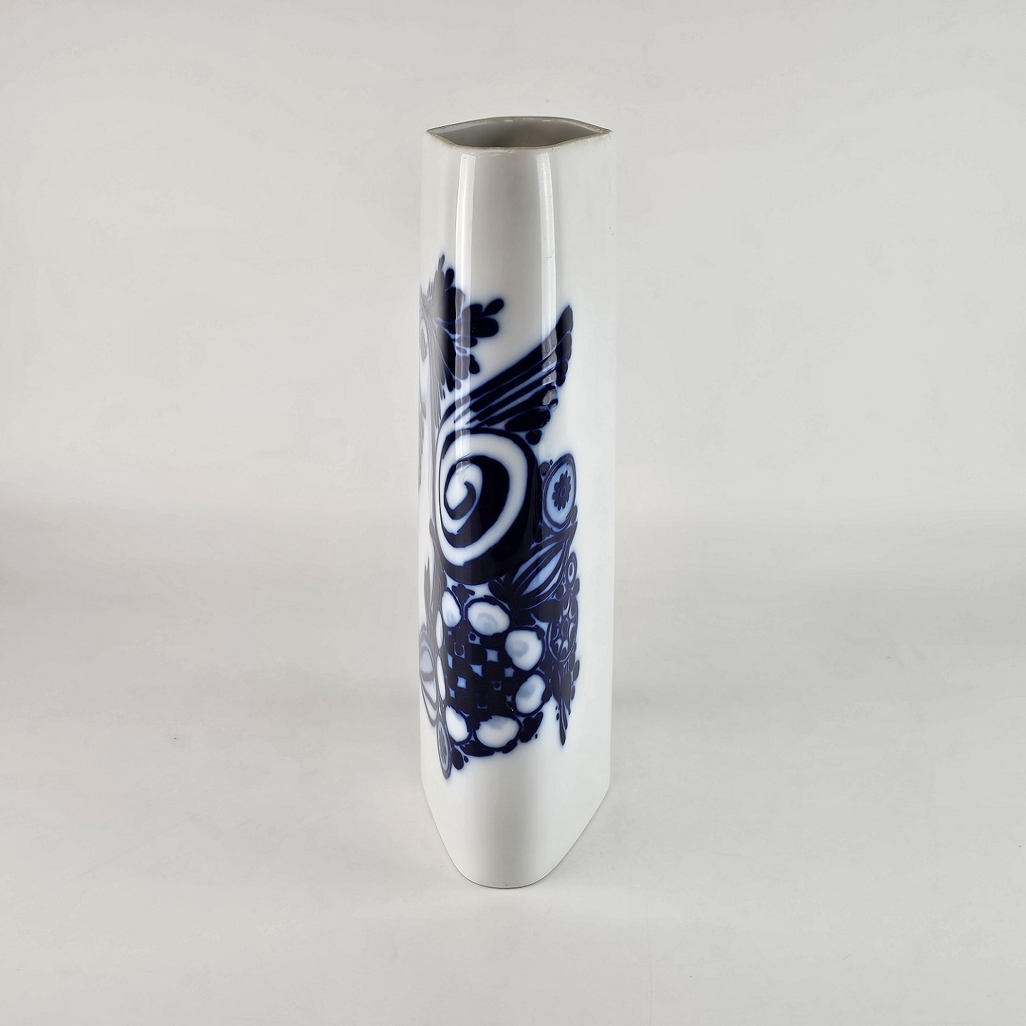 Høj, rudeformet Rosenthal vase med motiv af påfugl.