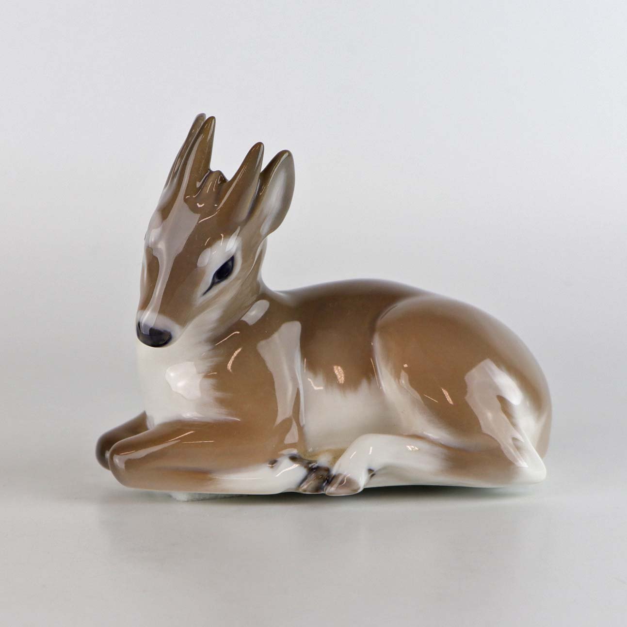 Kongelig figur i porcelæn med motiv af liggende rådyr eller dådyr med horn. Nr. 2648