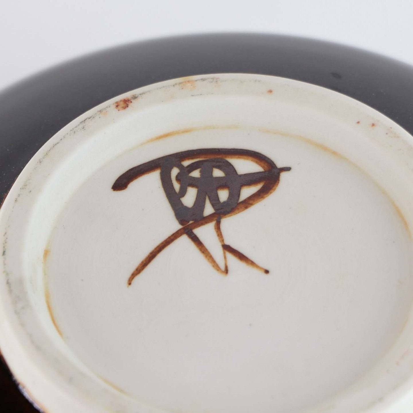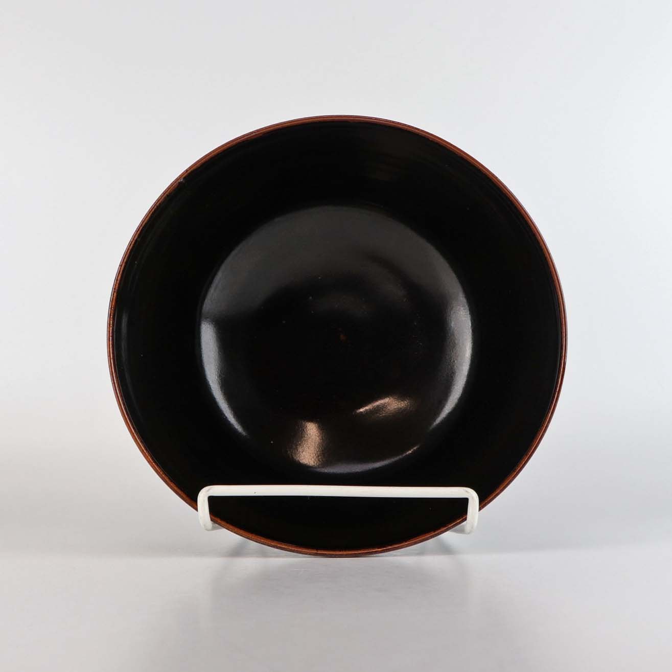 Skål i stentøj. Skålen er glaseret i en dyb mørkbrun farve.