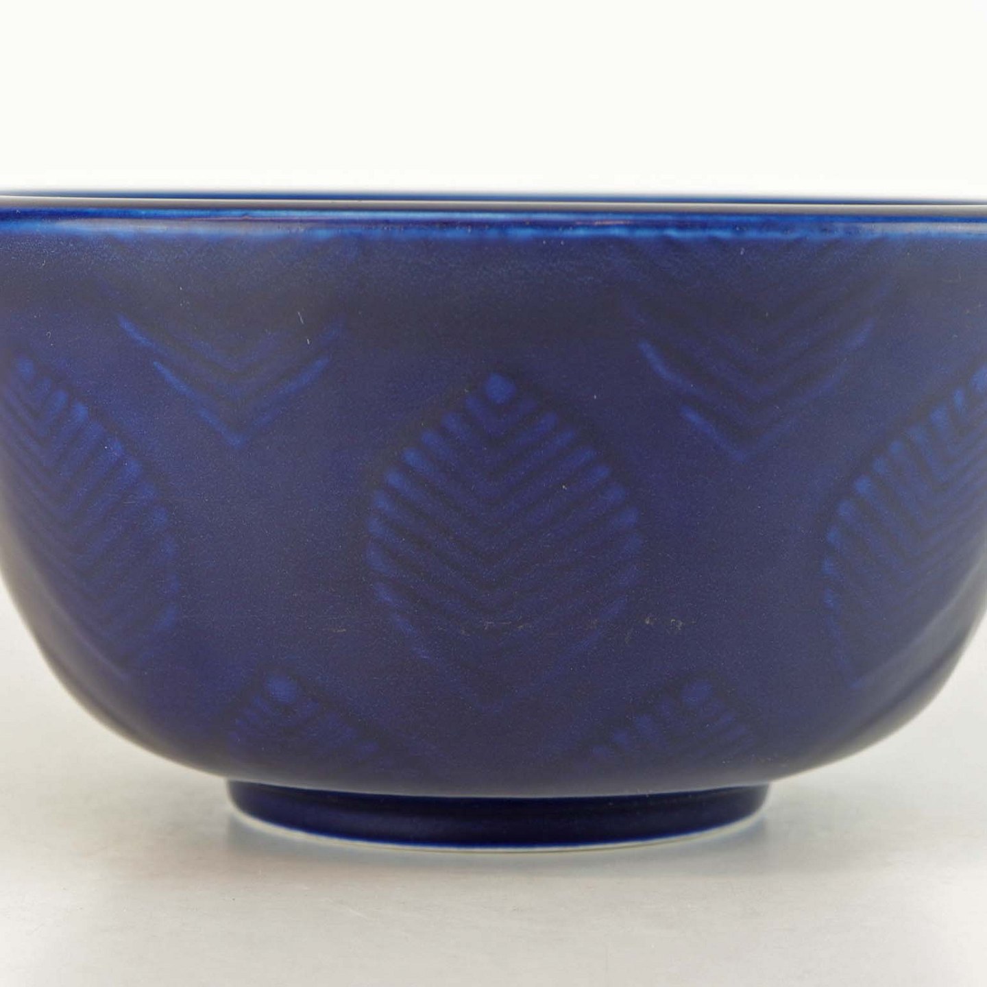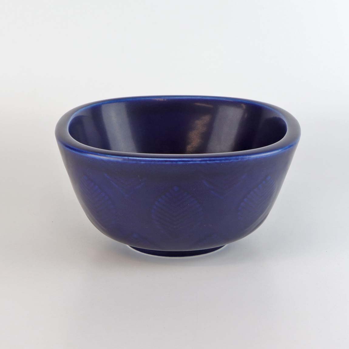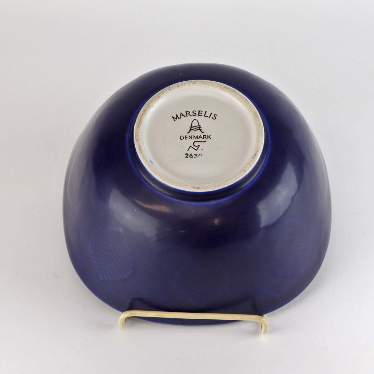 Kantet blå Marselis skål i fajance dekoreret med motiv af blade. Nr. 2630