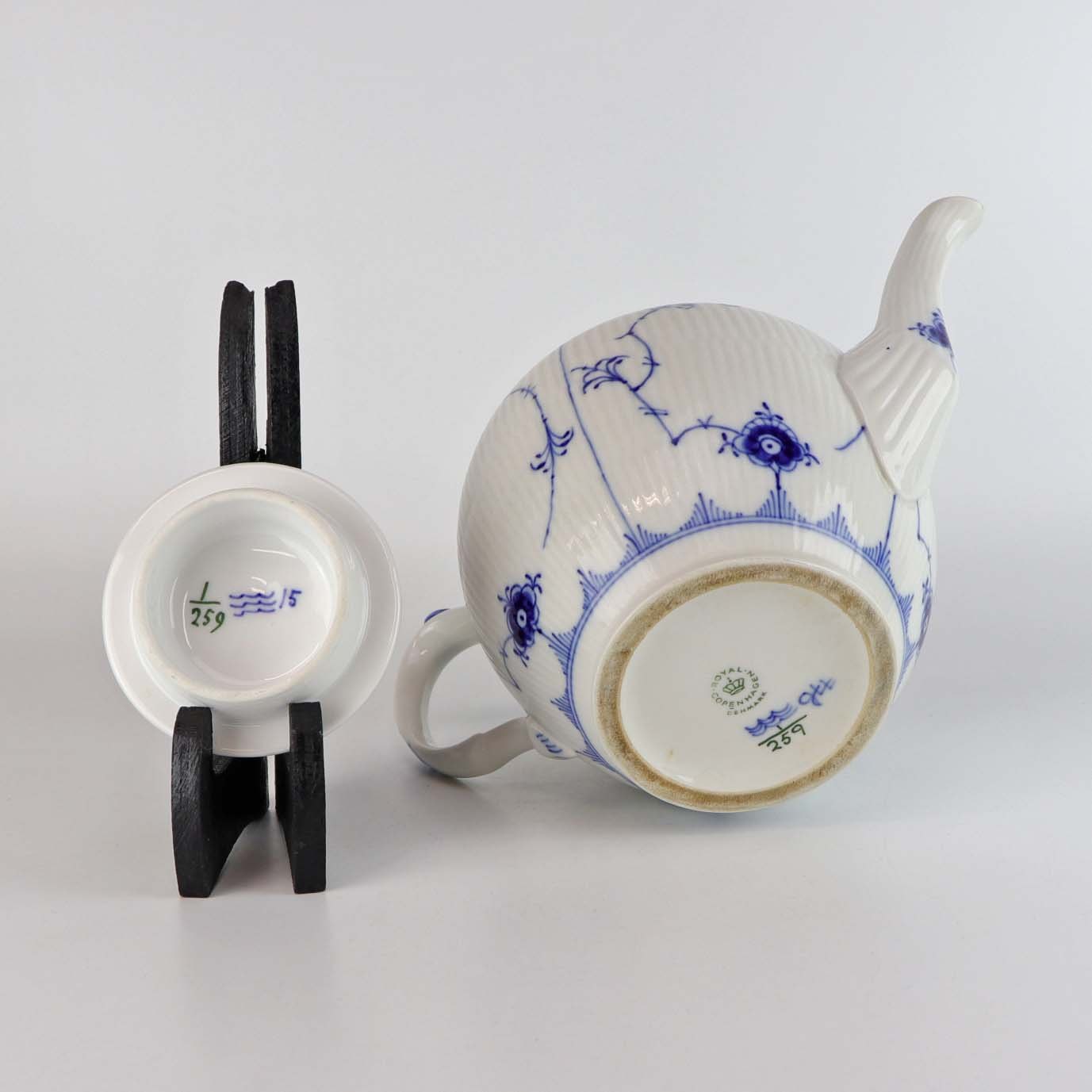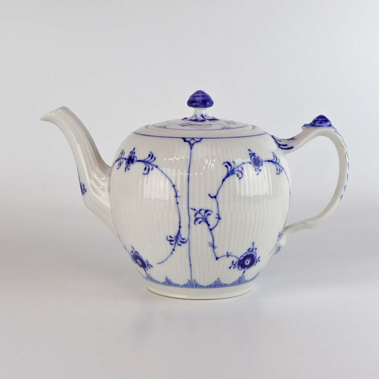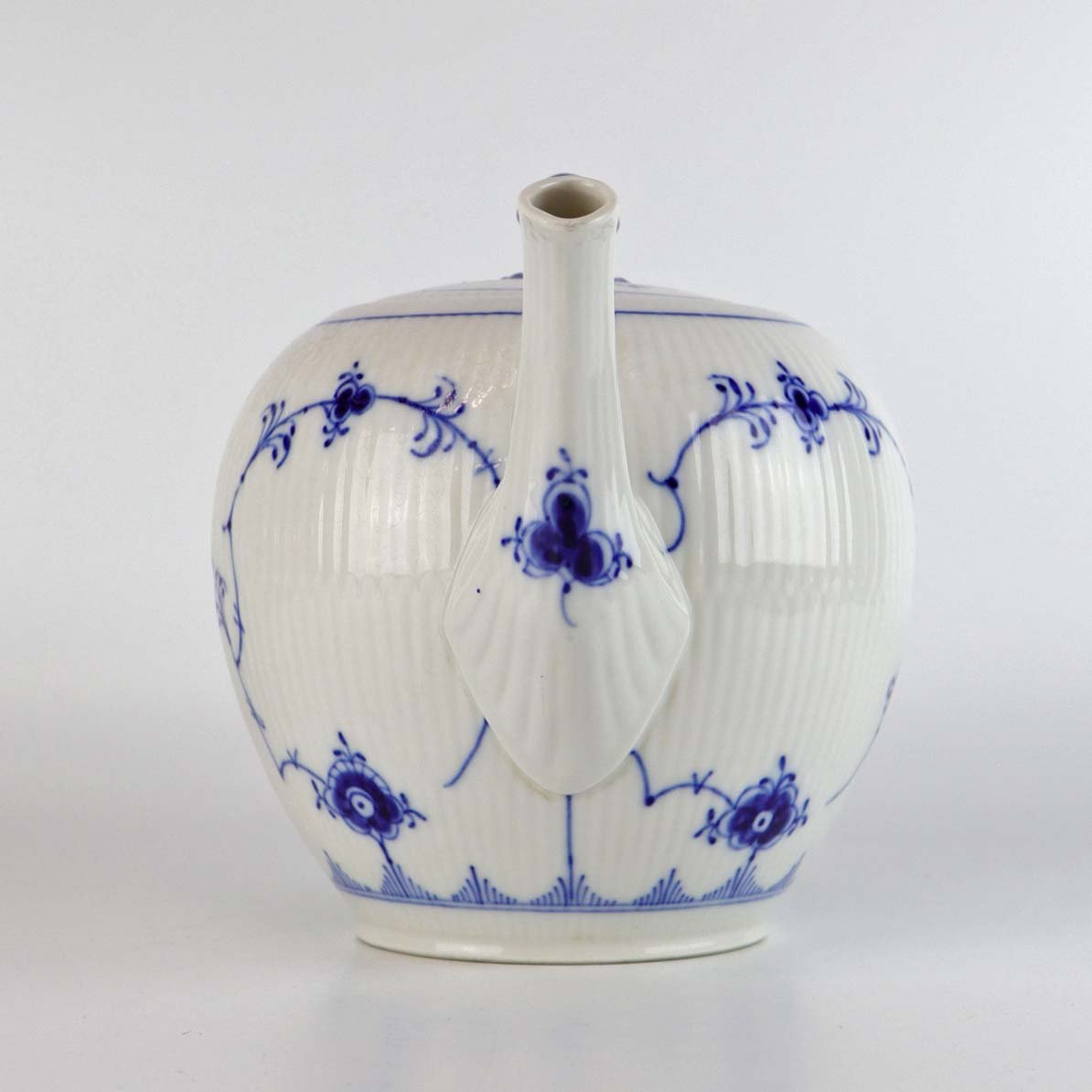 Kongelig kande til te i porcelæn fra stellet musselmalet riflet. Nr. 1/259