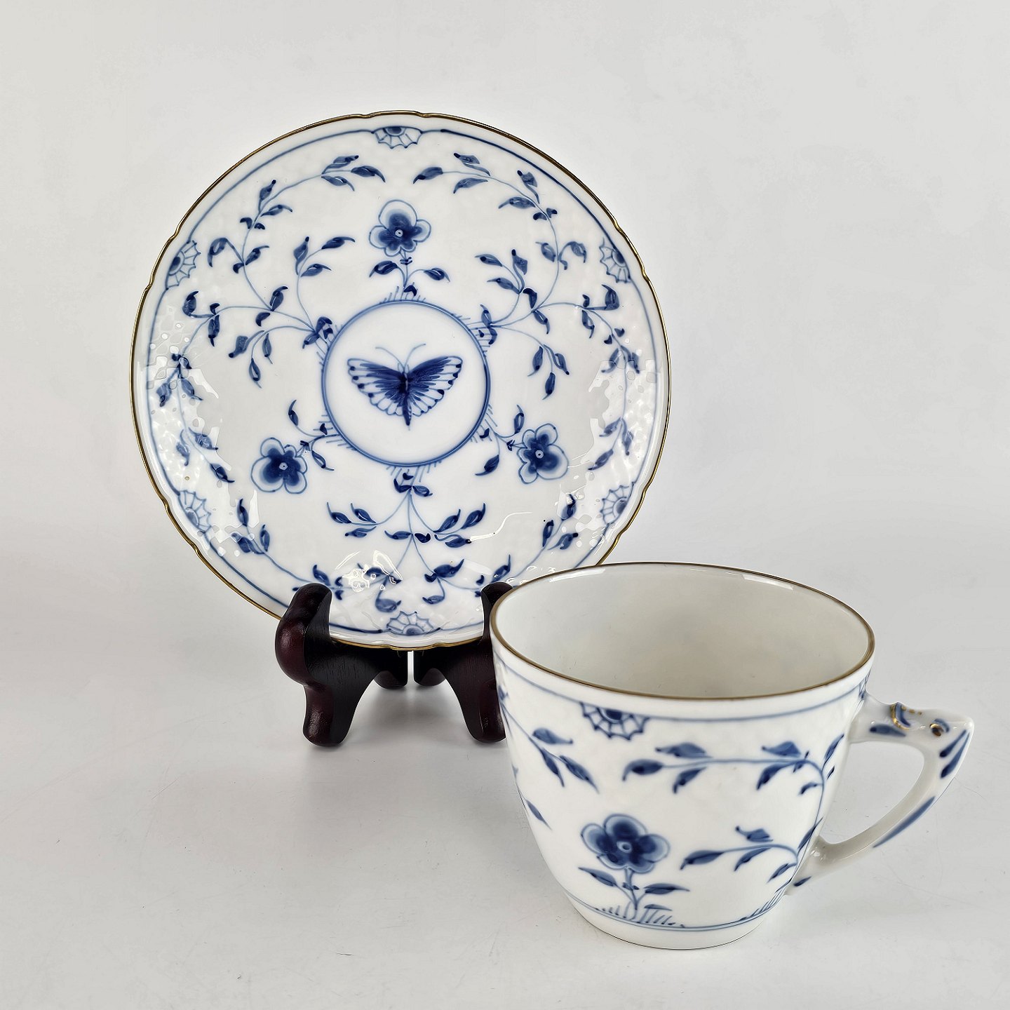 Kipling er magen til sommerfuglestellet, blot med guldkant. Stellet er dekoreret med blå grene, blade og blomster. På nogle dele af stellet ses også en sommerfugl. Brugsspor kan forekomme