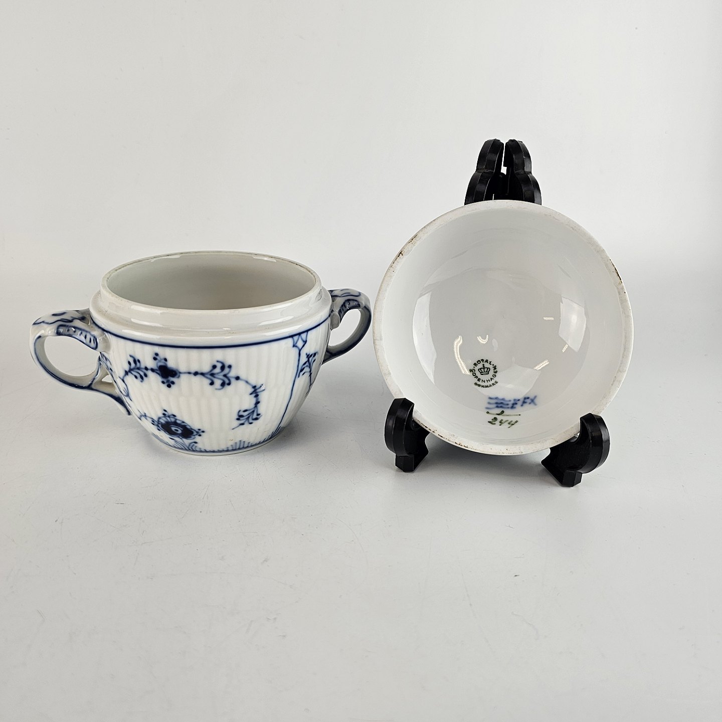 Sukkerskål i porcelæn fra stellet Riflet Musselmalet. Nr 244.