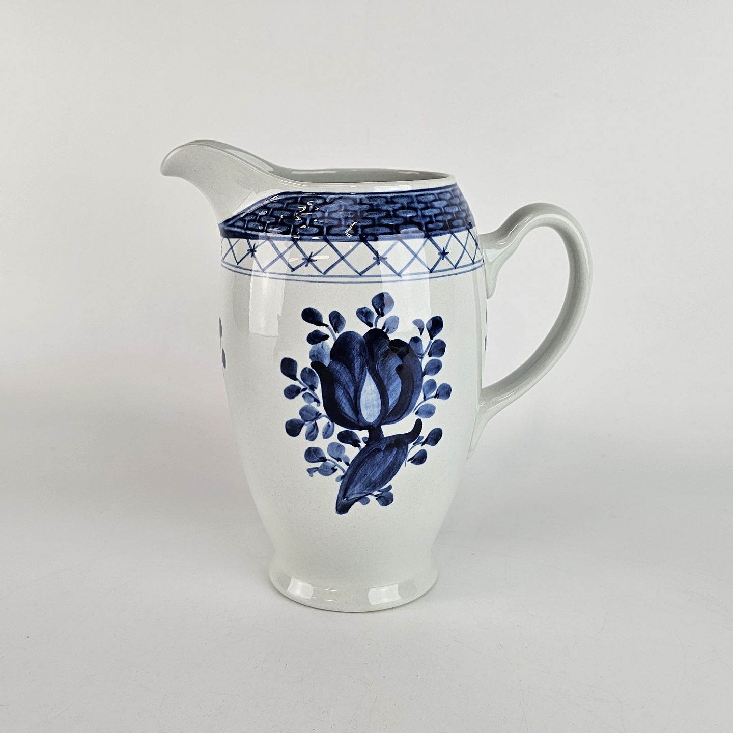 Glat hvid fajance med blå dekoration af blomster og blå bort