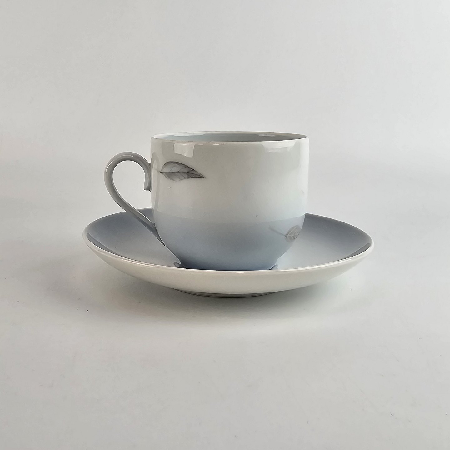 Kop og underkop i porcelæn fra stellet Løvfald. Nr 102.