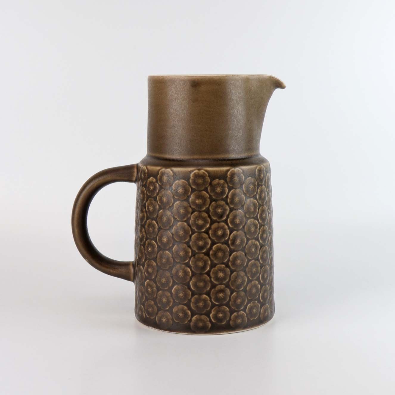 Stel i brun stentøj med blomster motiver